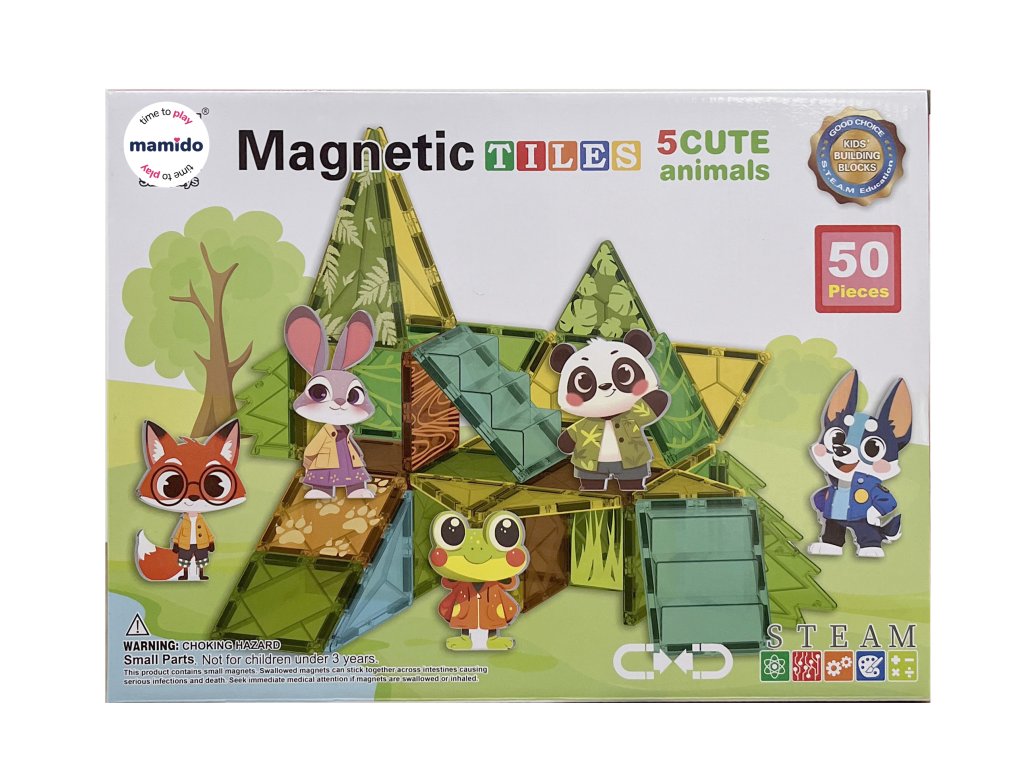 Kouzelná magnetická stavebnice s dílky o velikosti 7,5 cm přináší dětem svět roztomilých zvířátek a hravých animovaných motivů. Sada obsahuje 50 barevných magnetických dílků různých tvarů, které lze snadno spojovat do domečků, zvířecích úkrytů i fantastických staveb. Jednoduché skládání podporuje kreativitu, jemnou motoriku a rozvoj představivosti.