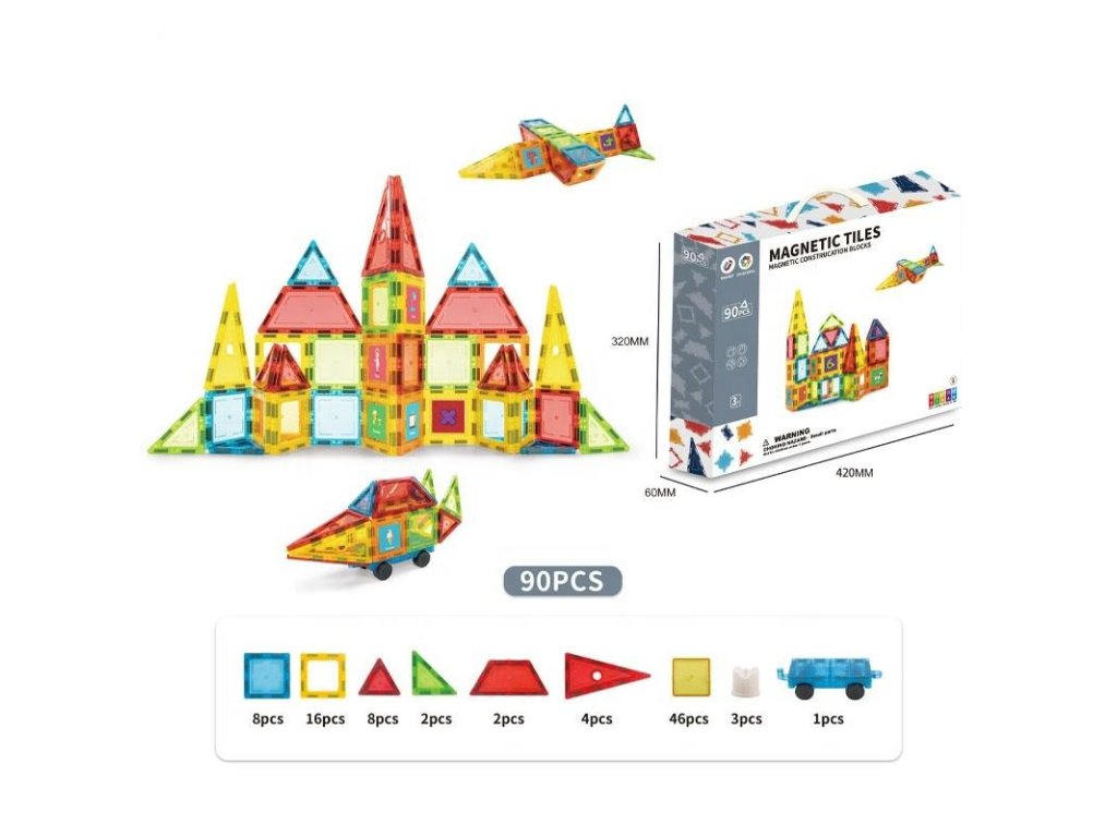Představujeme jedinečný stavební set, který vašim dětem nabídne nekonečné hodiny tvořivé zábavy! Tento balíček obsahuje 90 magnetických dílků různých tvarů a barev, umožňujících vytvořit nespočet různých struktur - od impozantních hradů až po rychlé stíhačky.