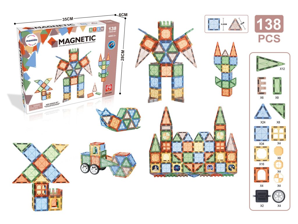 - 138 magnetických dílků v různých tvarech (čtverce, trojúhelníky, speciální díly)