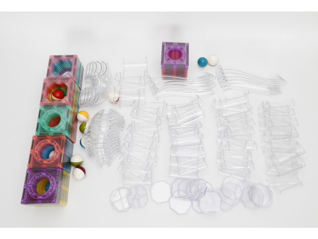 Stavebnice podporuje kreativitu, logiku i jemnou motoriku a je kompatibilní s většinou běžných magnetických stavebnic.