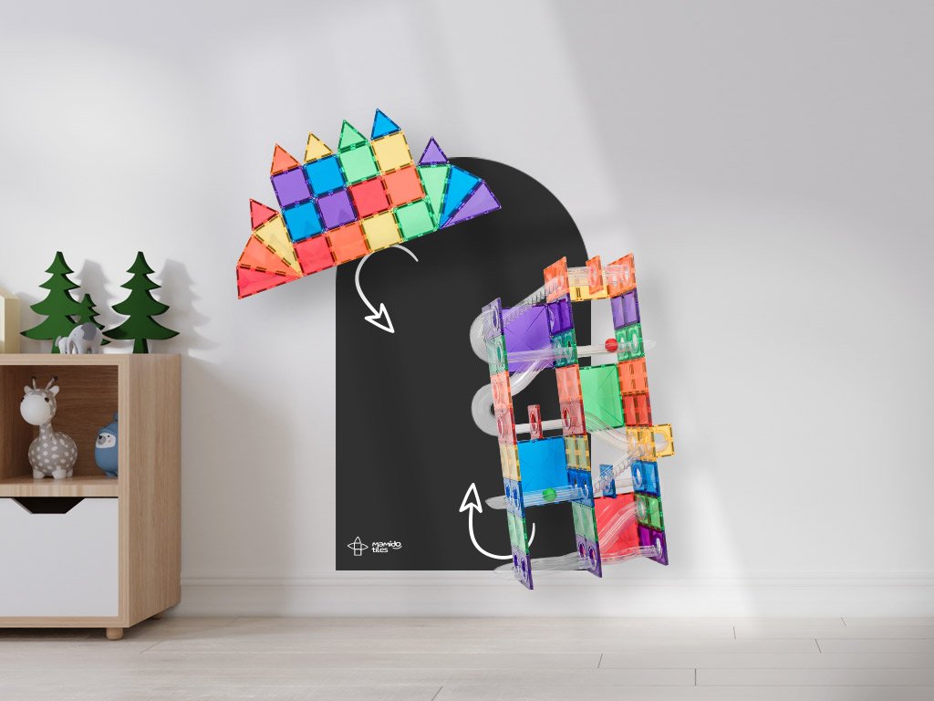 Magnetická tapeta Mamido Tiles přinese dětem ještě více zábavy, tvoření a učení díky magnetické síle a snadné instalaci. Stačí ji nalepit na hladkou stěnu a během okamžiku vznikne interaktivní prostor pro magnetky, kreslení křídou, malování omyvatelnými barvami i psaní fixem na tabule.