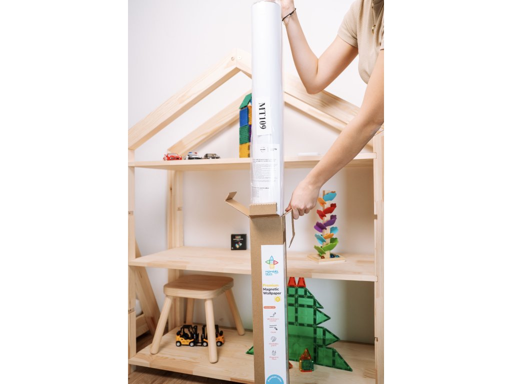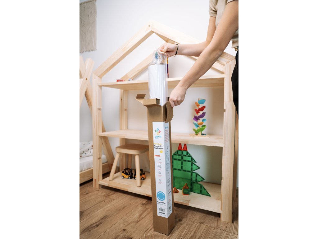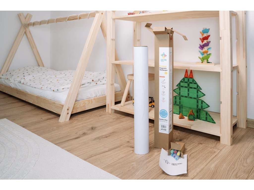 Magnetická tapeta Mamido Tiles přinese dětem ještě více zábavy, tvoření a učení díky magnetické síle a snadné instalaci. Stačí ji nalepit na hladkou stěnu a během okamžiku vznikne interaktivní prostor pro magnetky, kreslení křídou, malování omyvatelnými barvami i psaní fixem na tabule.