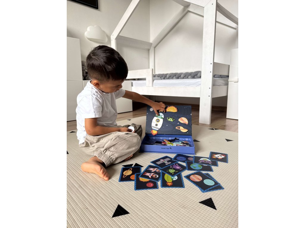 Prozkoumejte nekonečný vesmír s Magnetickou vesmírnou sadou, ideální pro děti od 3 let. Tato interaktivní hračka obsahuje 72 magnetických dílků, které děti mohou umisťovat na magnetickou tabuli, a tak vytvářet vlastní vesmírné scény. Hračka podporuje kreativitu, logické myšlení a jemnou motoriku. Vyrobena z bezpečných a ekologických materiálů, sada je odolná a šetrná k dětské pokožce.