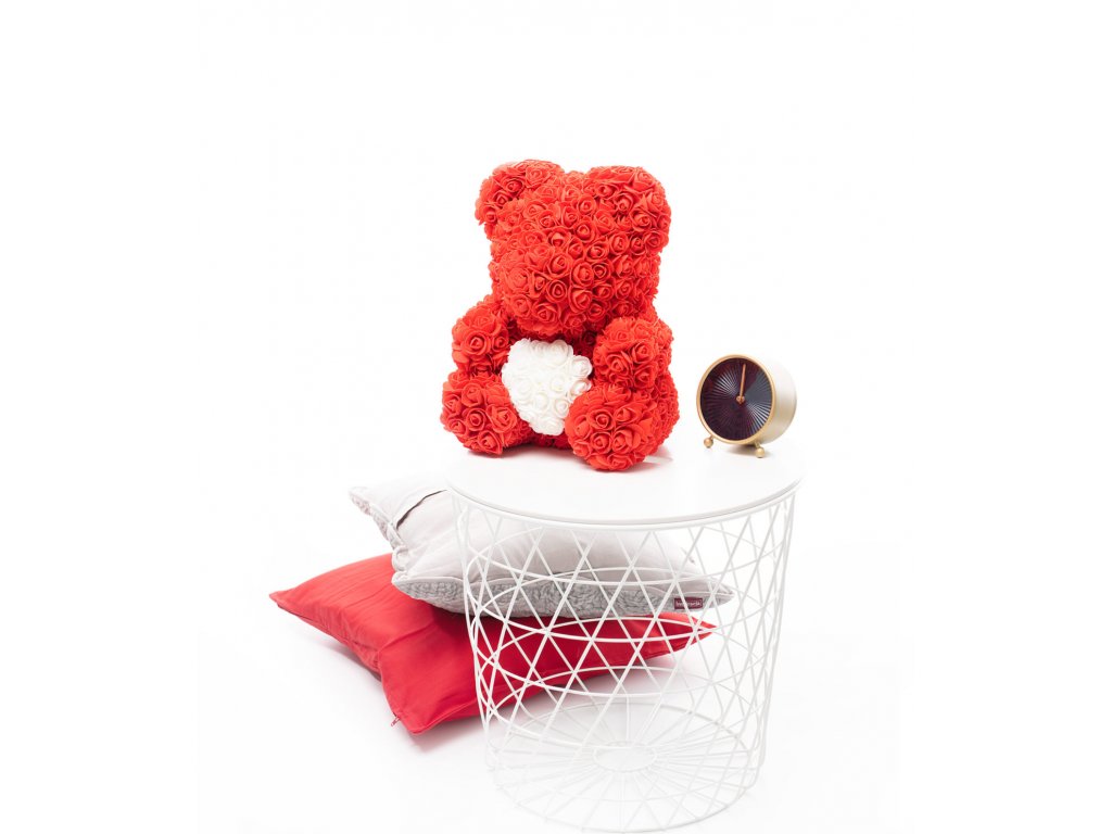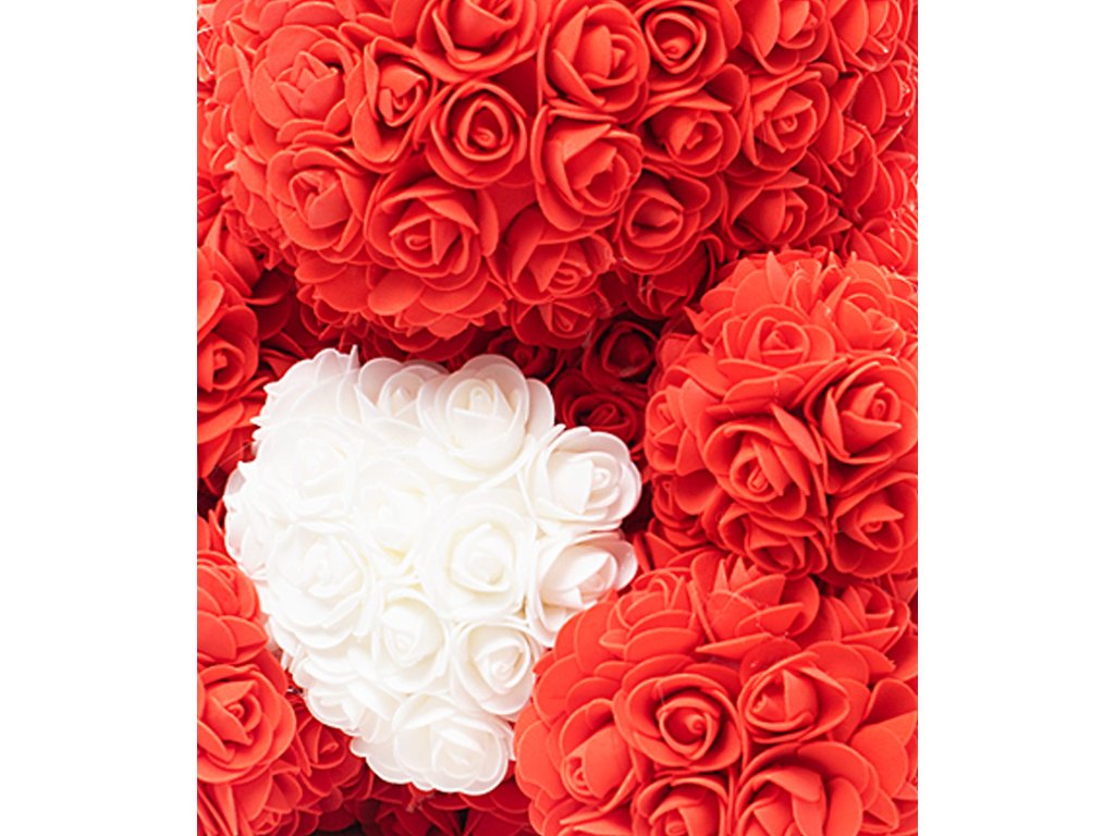 Medvídek z růží Rose Bear červený se srdíčkem 40 cm