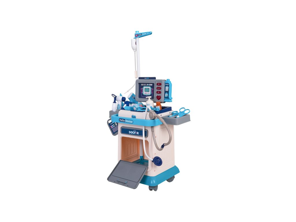 Interaktivní, bohatě vybavená lékařská souprava se zvukovými a světelnými efekty, pro děti od tří let. Souprava se skládá z pevně vyrobeného, lehkého vozíku na kolečkách s praktickým držadlem a lékařskými nástroji. Můžeme vyměňovat rentgenové snímky nebo tomograf. Na monitorovacím displeji lze pomocí tlačítek aktivovat zvuky srdečního tepu, pulzu, tomografu a také alarmu. Rozsvítí se také tlačítko se srdíčkem. Monitorovací panel je napájen bateriemi typu 2 X AA 1,5 V (nejsou součástí sady). Teploměr je napájen bateriemi typu 2 X LR44 (součástí balení).