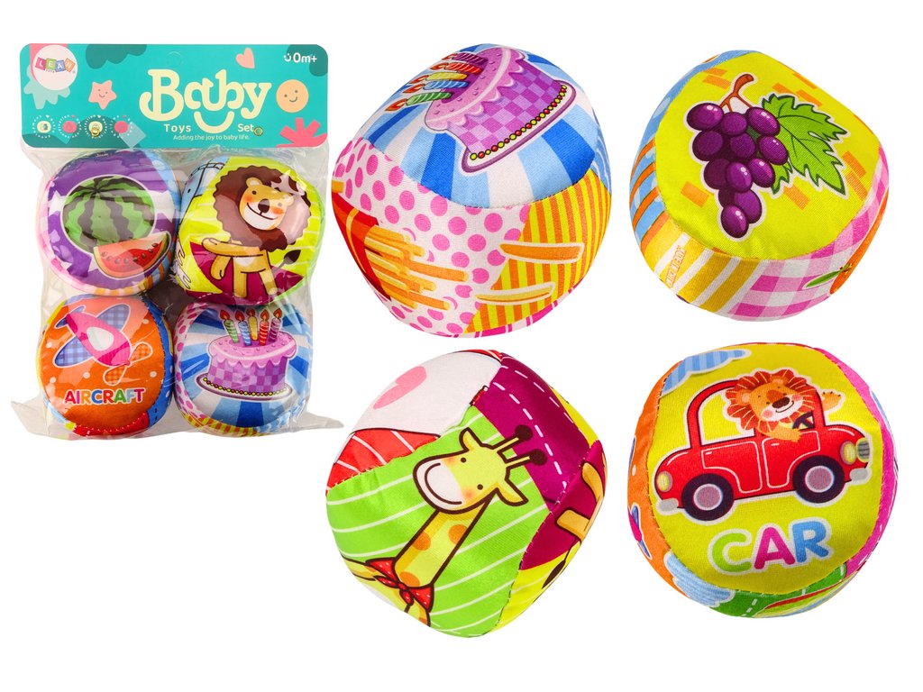 Sada 4 měkkých míčků pro děti je edukační a interaktivní hračka, která spojuje učení a zábavu. Každý míček v sadě má unikátní motivy, které podporují učení prostřednictvím hry. Barevné ilustrace zvířátek, ovoce a sladkostí pomáhají dětem rozpoznávat různé předměty. Míček s kresbami základních dopravních prostředků, každá označená v angličtině, vnáší děti do světa cizího jazyka.