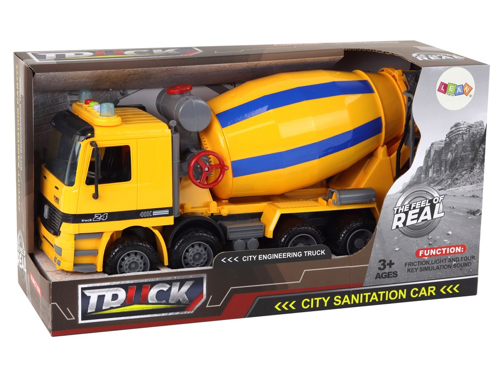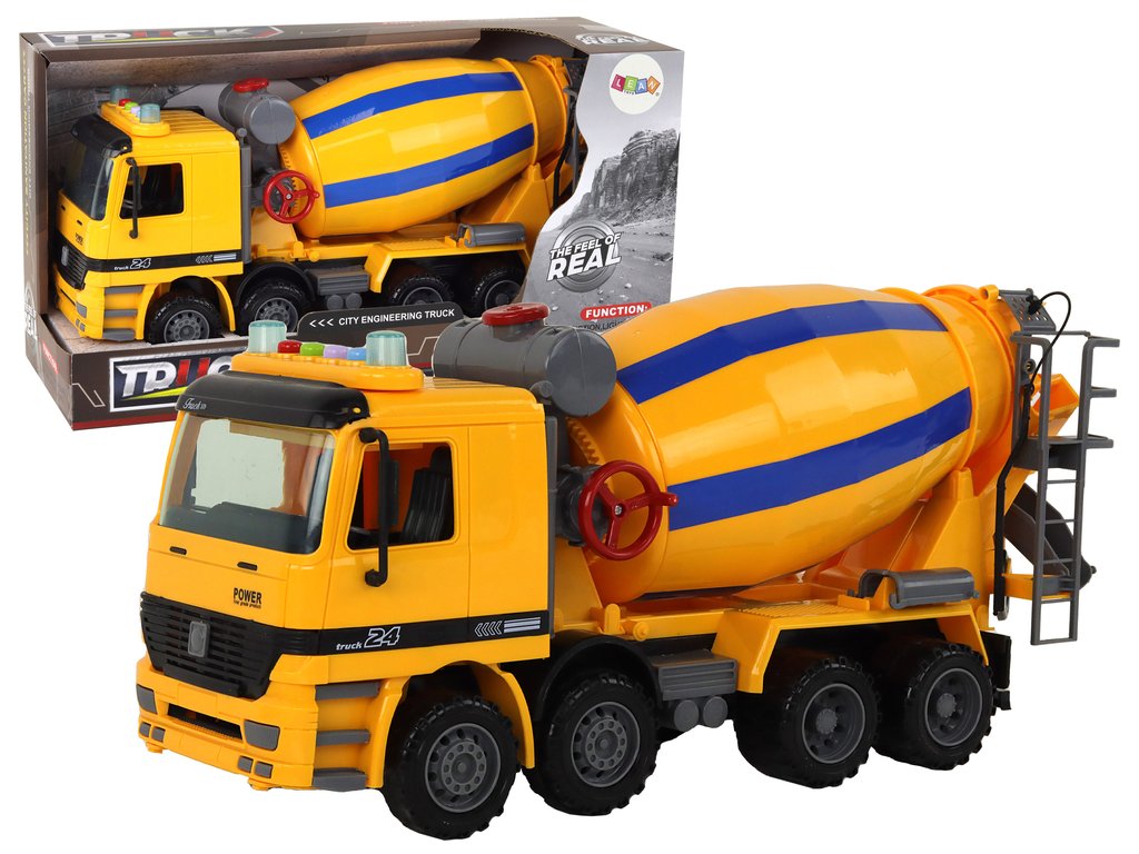 Míchačka v žluto-modré barvě přináší atraktivní a charakteristický vzhled. Realistické detaily dodávají hračce podobu skutečné míchačky, což zvyšuje přitažlivost pro děti.