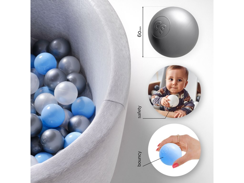 Míčky do suchého bazénu Ø 6 cm 200 ks (perleťové, stříbrné, perleťově světle modré)