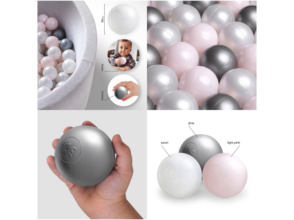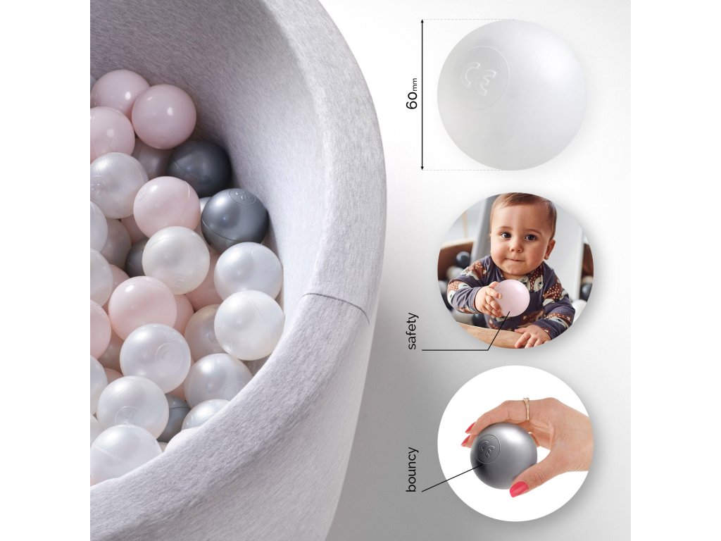 Míčky do suchého bazénu Ø 6 cm 200 ks (perleťové, stříbrné, perleťově světle růžové)