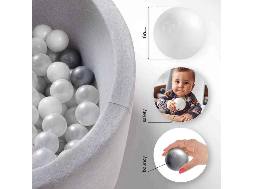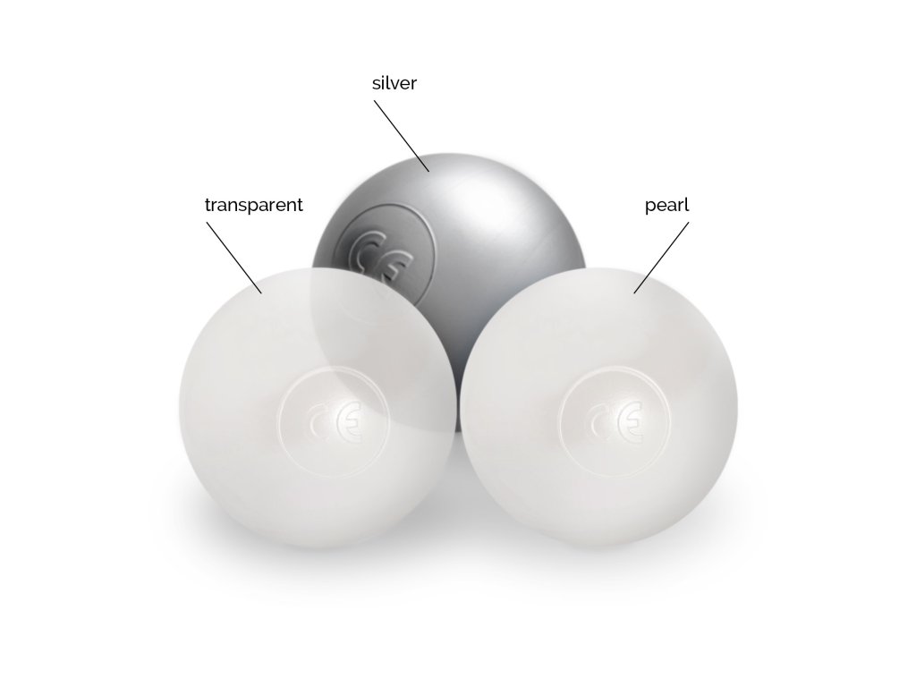 Míčky do suchého bazénu 200 ks (Ø 6 cm, perleťové, průhledné, stříbrné)