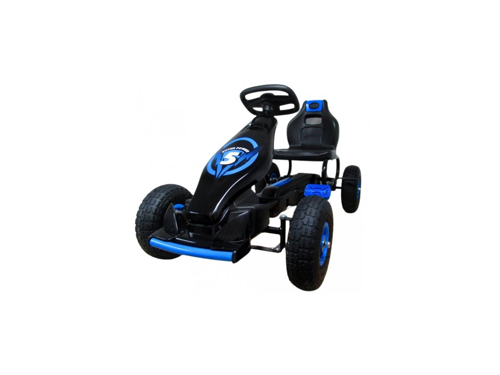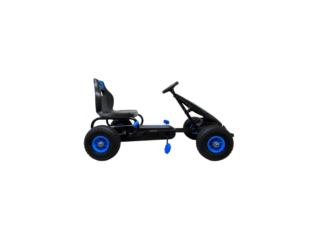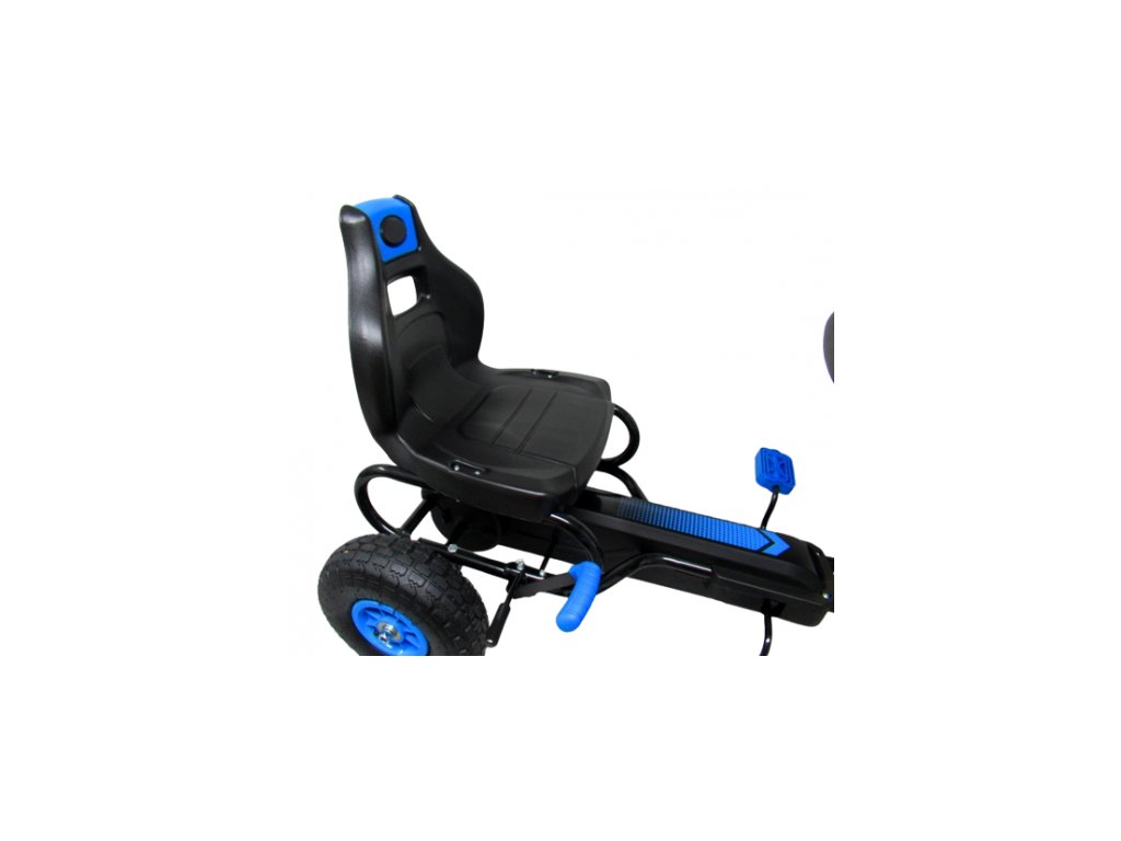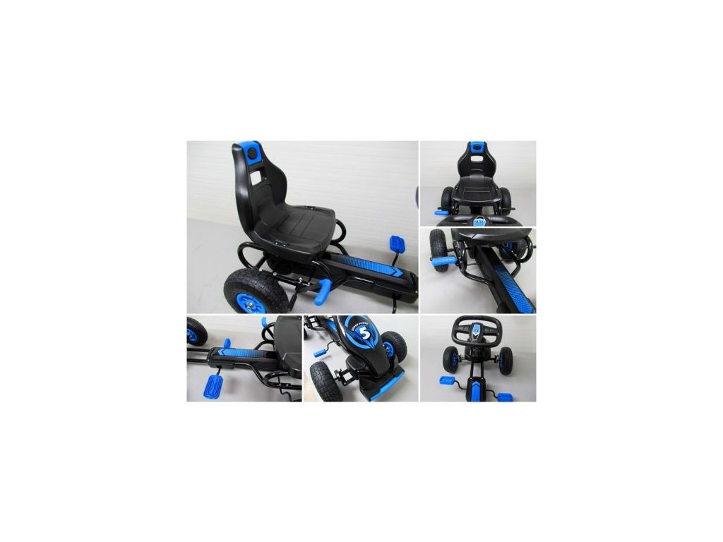 Dětská šlapací motokára je bezpečná a pohodlná. Má speciálně navržený rám a jedinečný design. Především má nafukovací kola, díky nimž se stává jízda komfortnější. Motokára má ruční brzdu a nastavitelné sedadlo na 2 úrovně.