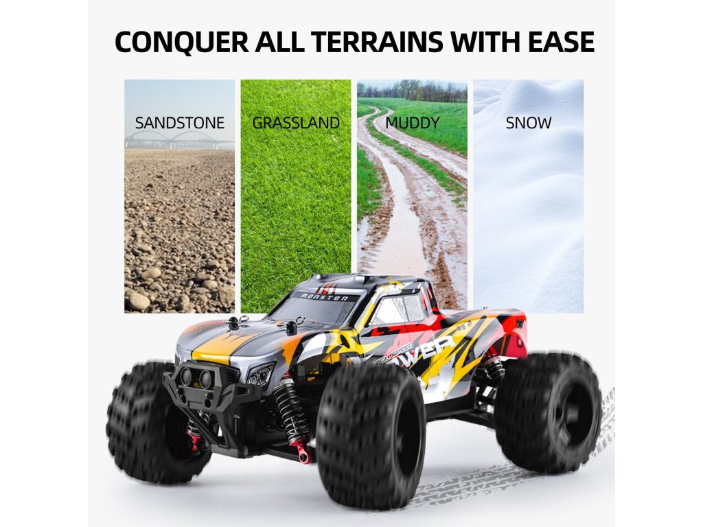 Zažijte neuvěřitelné závodní dobrodružství s tímto vysokorychlostním Monster Truckem na dálkové ovládání v měřítku 1:16. Tento RC vůz je navržen pro maximální výkon a zábavu, ať už jezdíte na silnici, v terénu nebo překonáváte překážky.
