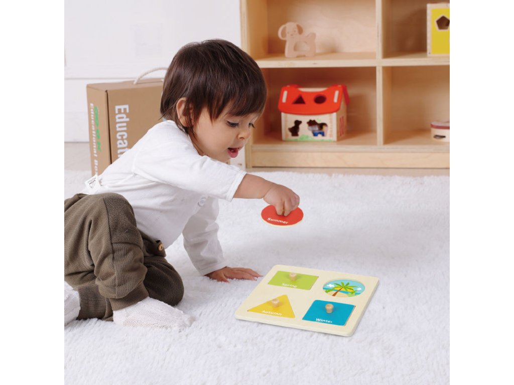 - Jednoduché puzzle, které učí děti poznávat roční období prostřednictvím barevných ilustrací.