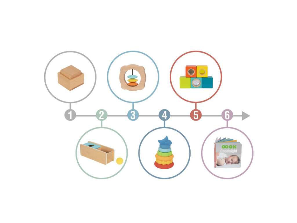 Představujeme Montessori Edukační box pro děti od 9 do 10 měsíců, navržený pro podporu smyslového, motorického a kognitivního vývoje vašeho dítěte. Tento box obsahuje 12 pečlivě vybraných hraček, které podporují koordinaci ruka-oko, jemnou motoriku a logické myšlení. Sada zahrnuje barevné kostky, stohovací hračky, senzorické karty a další interaktivní prvky. Všechny hračky jsou vyrobeny z kvalitních, bezpečných a ekologických materiálů, které jsou šetrné k dětské pokožce.