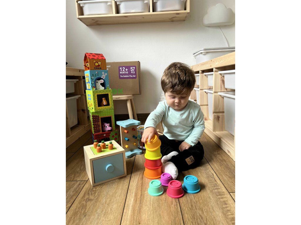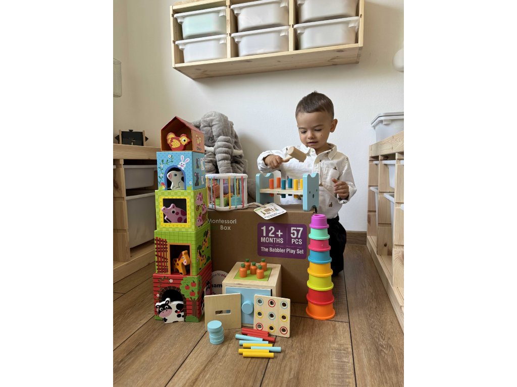 Podpořte vývoj svého batolete s Montessori Play Boxem pro děti od 12 měsíců. Tento box obsahuje 52 pečlivě vybraných prvků, které stimulují jemnou motoriku, logické myšlení a koordinaci ruka-oko.