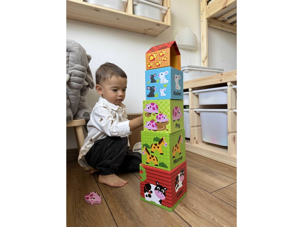 - Každá kostka je tematicky zaměřená na zvířata a farmu, což pomáhá učit se o různých zvířatech a prostředí, kde žijí.Kostky mají navíc otvory, které umožňují umístit dovnitř malé figurky zvířat ze sady. Tato kombinace nabízí nejen zábavu, ale také vzdělávací rozměr, protože děti si při hraní rozšiřují povědomí o přírodě a zvířecím světě.