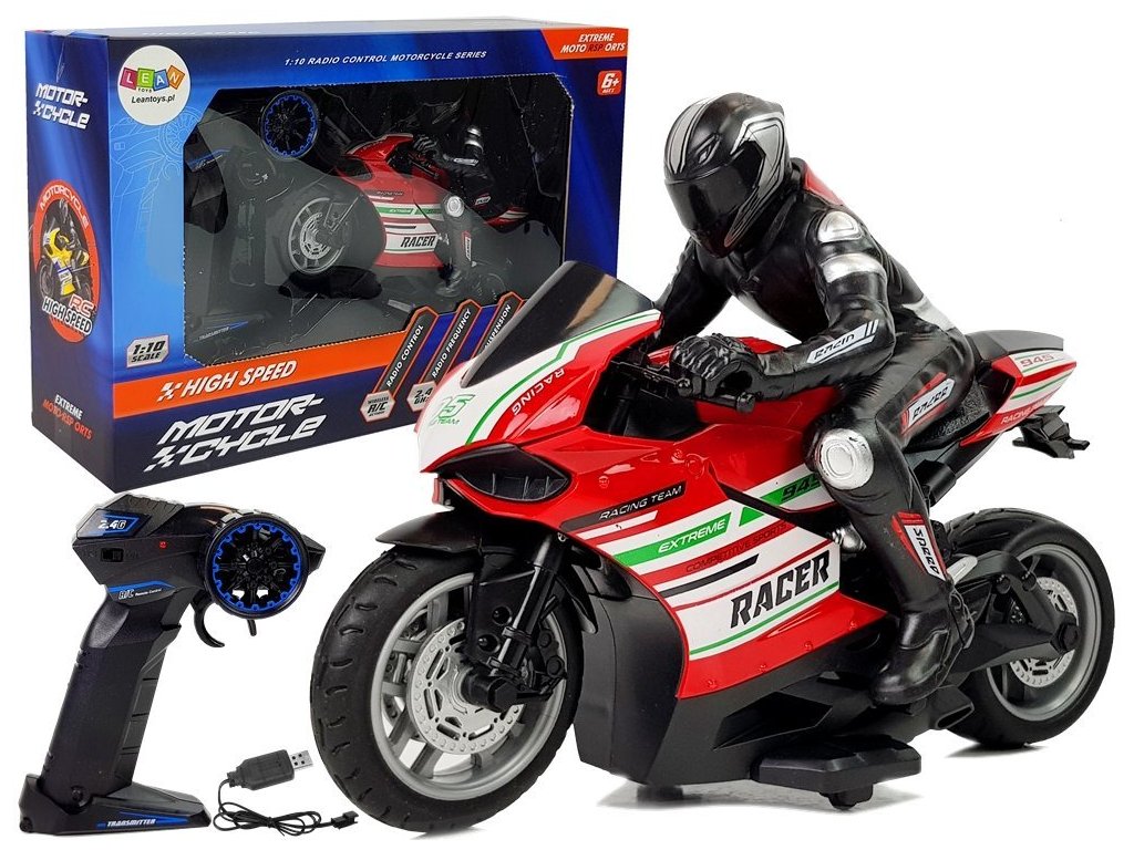 Rychlé motorky jsou něco pro fanoušky motorizace a extrémní jízdy. Dálkový ovladač má pohodlnou rukojeť a je bezdrátový. Vysílá frekvenci 2,4GHz, takže můžete závodit ve větší skupině bez obav ze vzájemného rušení. Můžete jej ovládat dopředu, dozadu a do stran.