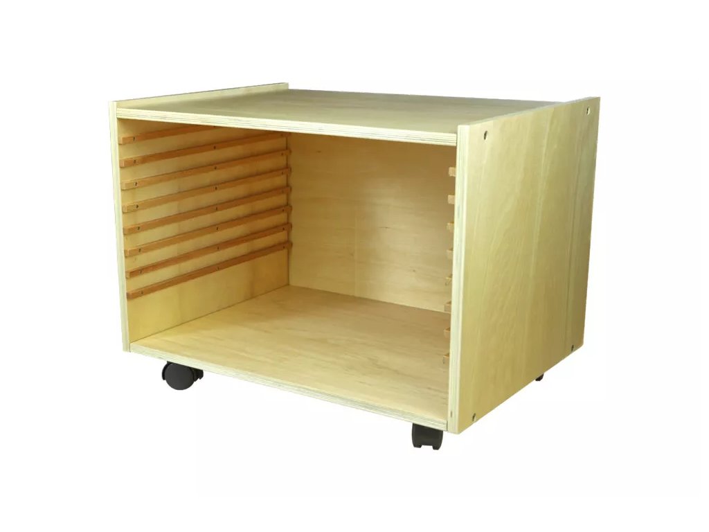 Komoda určená pro uložení geografických Montessori map o rozměru 57,5 × 44,5 cm.