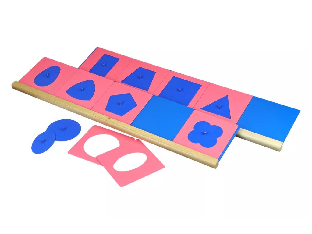 - Přizvěte dítě k pomůcce a nabídněte mu výběr tvaru. Dítě si zvolí tvar a položí jej i s rámečkem na tác.