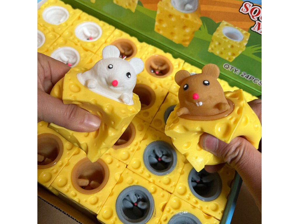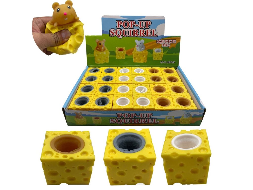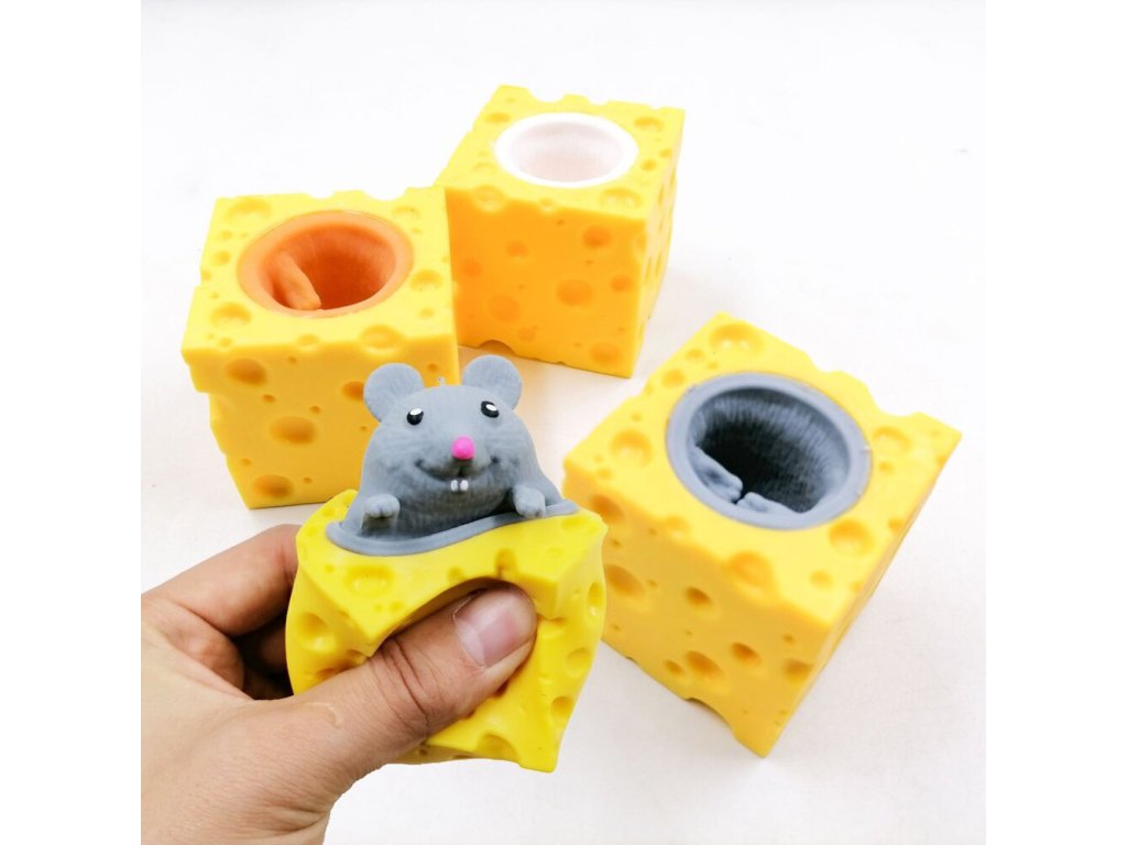 Senzorická hračka určená k procvičování dotyku. Výborná pro cvičení rukou a prstů. Určena pro děti na zlepšení motoriky, ale i pro dospělé ke snížení stresu. Stačí jemně stisknout kostku sýra dlaní a veselá myška rychle vyskočí z prostředka, aby se hned zase skryla.