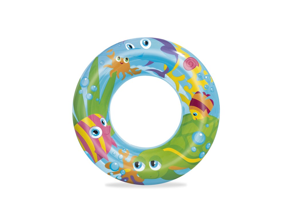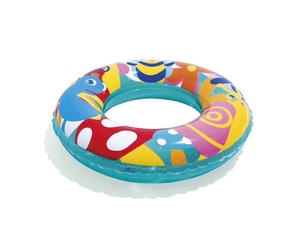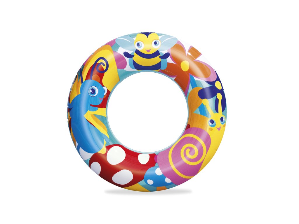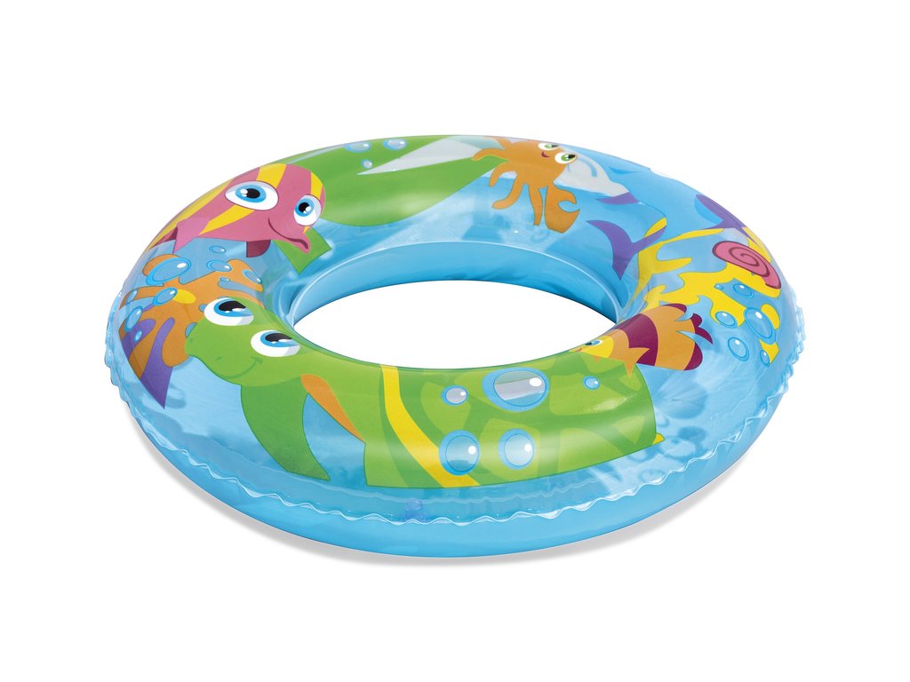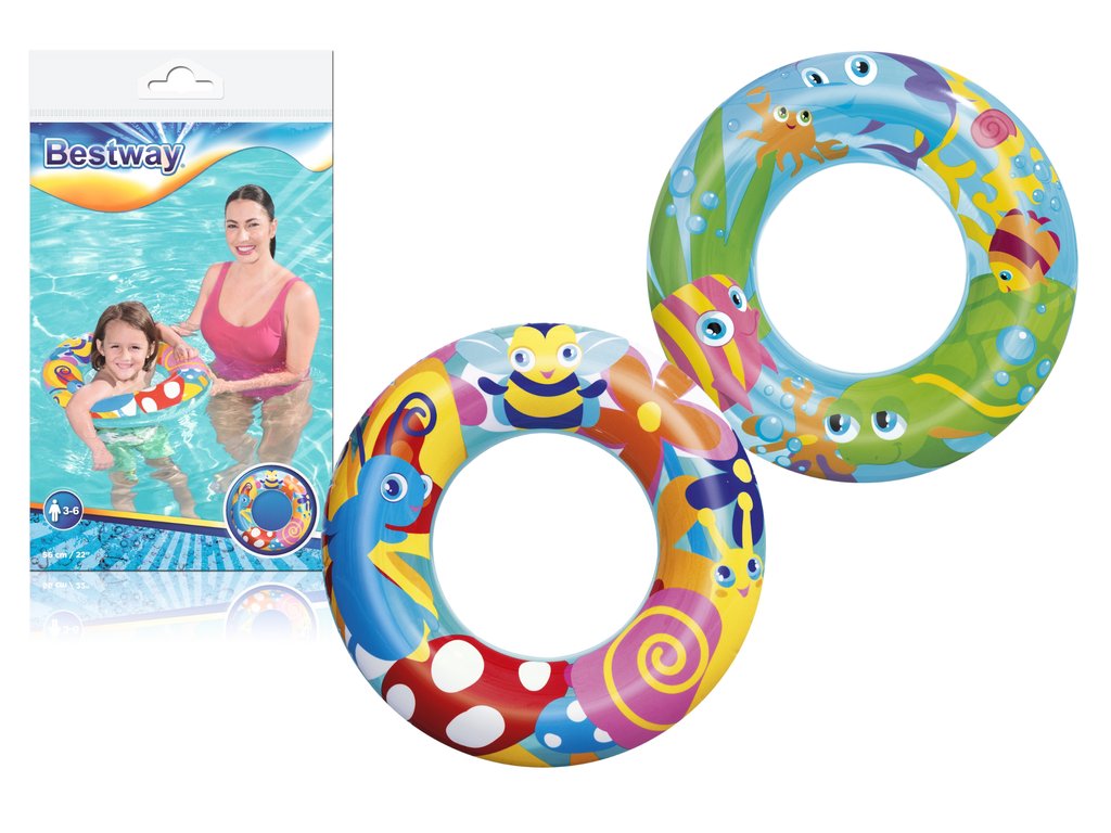 Nafukovací plavecký kruh pro děti má průměr 56 cm. Kruh bude skvělým doplňkem během dovolené, bez ohledu na to, zda se koná u moře nebo v bazénu. Jsme si jisti, že kruh snadno povzbudí vaše dítě k vodním venkovním aktivitám a diverzifikaci jeho her. Díky barevným motivům kolo vynikne a dítě, které ho používá, se stává viditelnějším. Kruh je vyroben z odolného PVC materiálu odolného proti poškození a je určeno pro děti od 3 do 6 let.