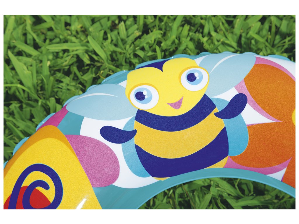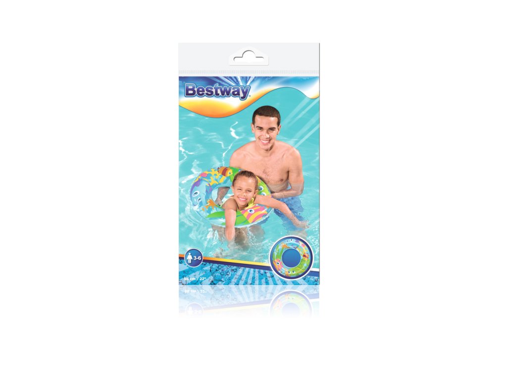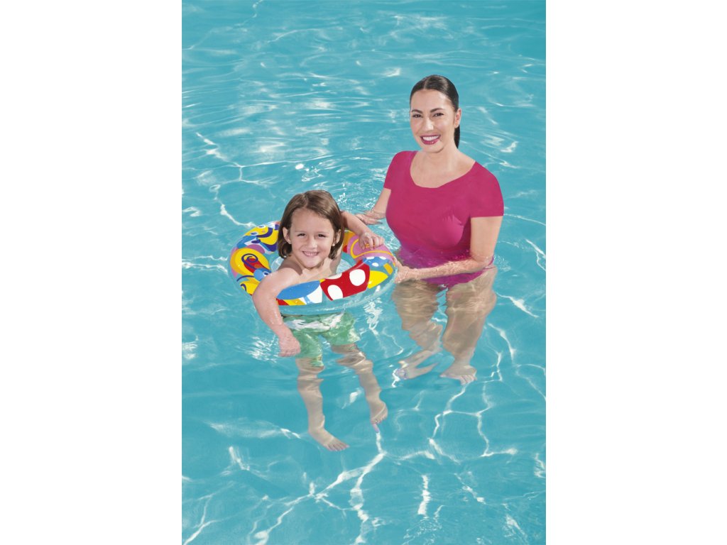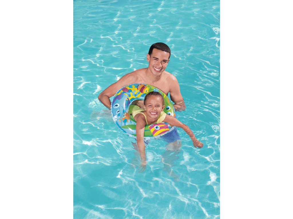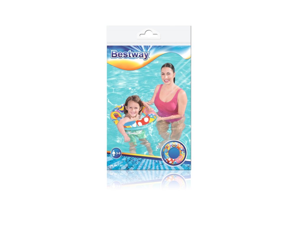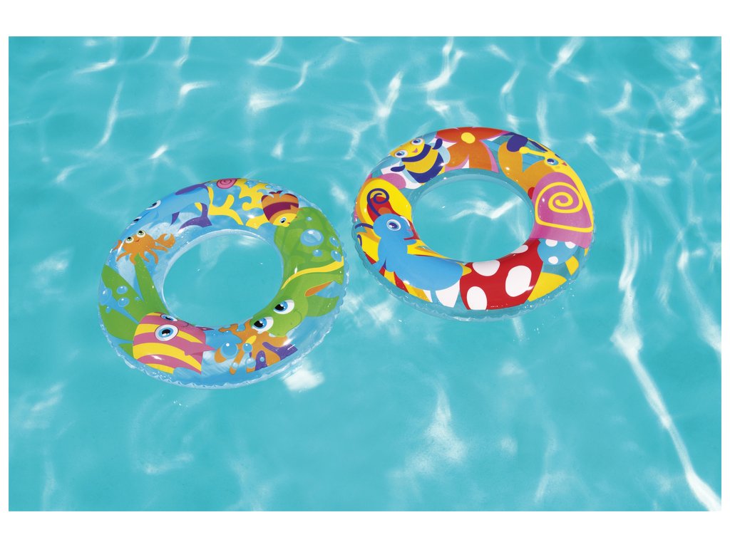 Nafukovací plavecký kruh pro děti má průměr 56 cm. Kruh bude skvělým doplňkem během dovolené, bez ohledu na to, zda se koná u moře nebo v bazénu. Jsme si jisti, že kruh snadno povzbudí vaše dítě k vodním venkovním aktivitám a diverzifikaci jeho her. Díky barevným motivům kolo vynikne a dítě, které ho používá, se stává viditelnějším. Kruh je vyroben z odolného PVC materiálu odolného proti poškození a je určeno pro děti od 3 do 6 let.