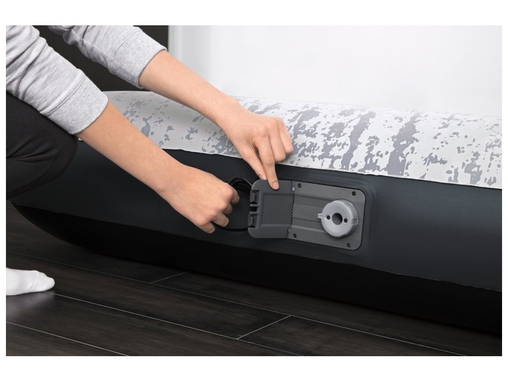 Vestavěné čerpadlo s panelem bude také regulovat množství vzduchu v matraci až na 7 nocí, čímž zabrání vyfouknutí vzduchu.