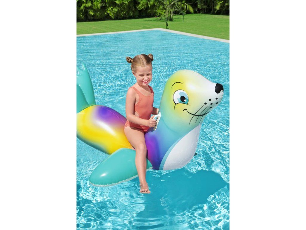 Nafukovací tuleň má dvě stabilní rukojeti a široké sedátko, které zajišťuje stabilitu a pohodlí. Tento nafukovací plavecký doplněk je vhodný k moři, jezeru nebo bazénu.