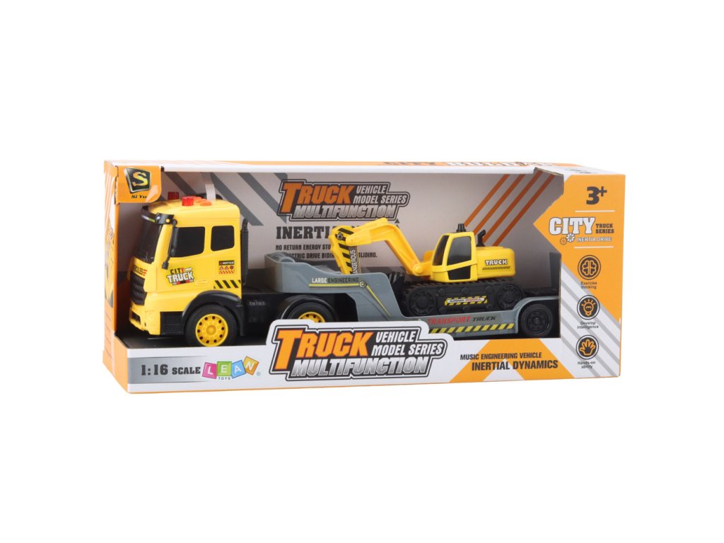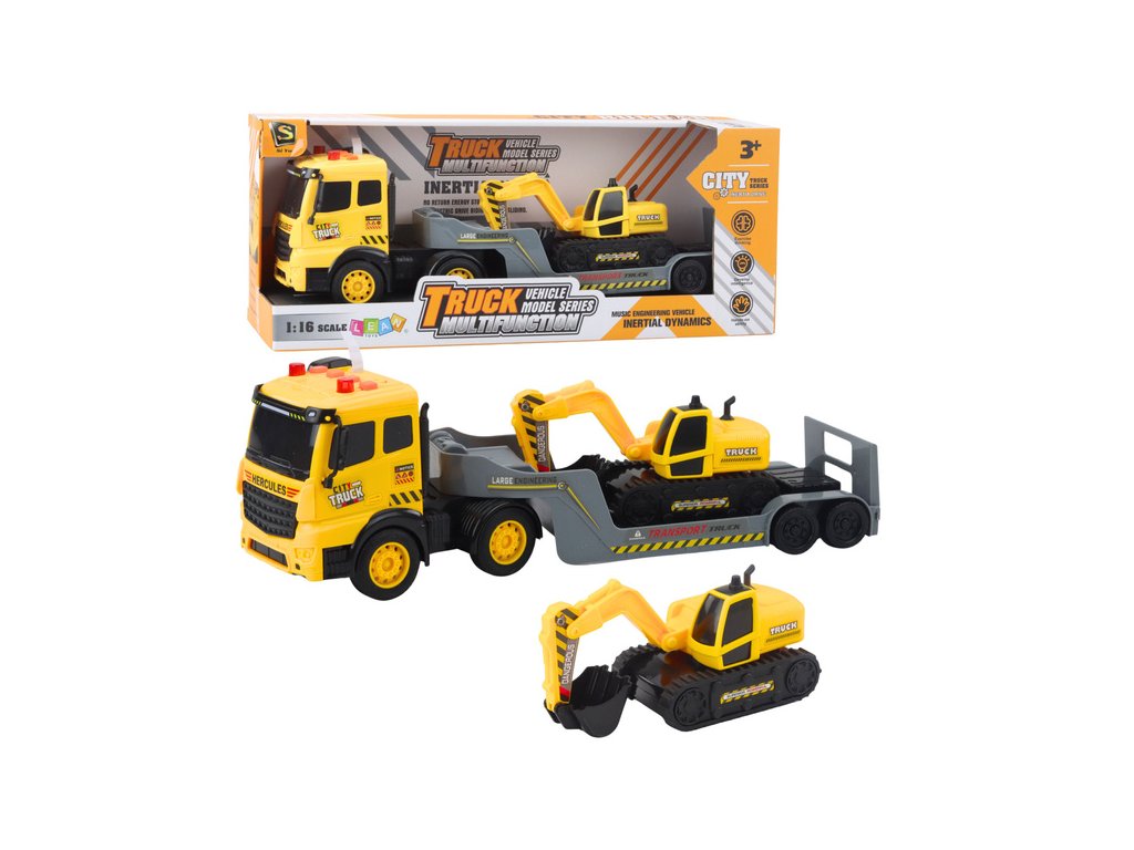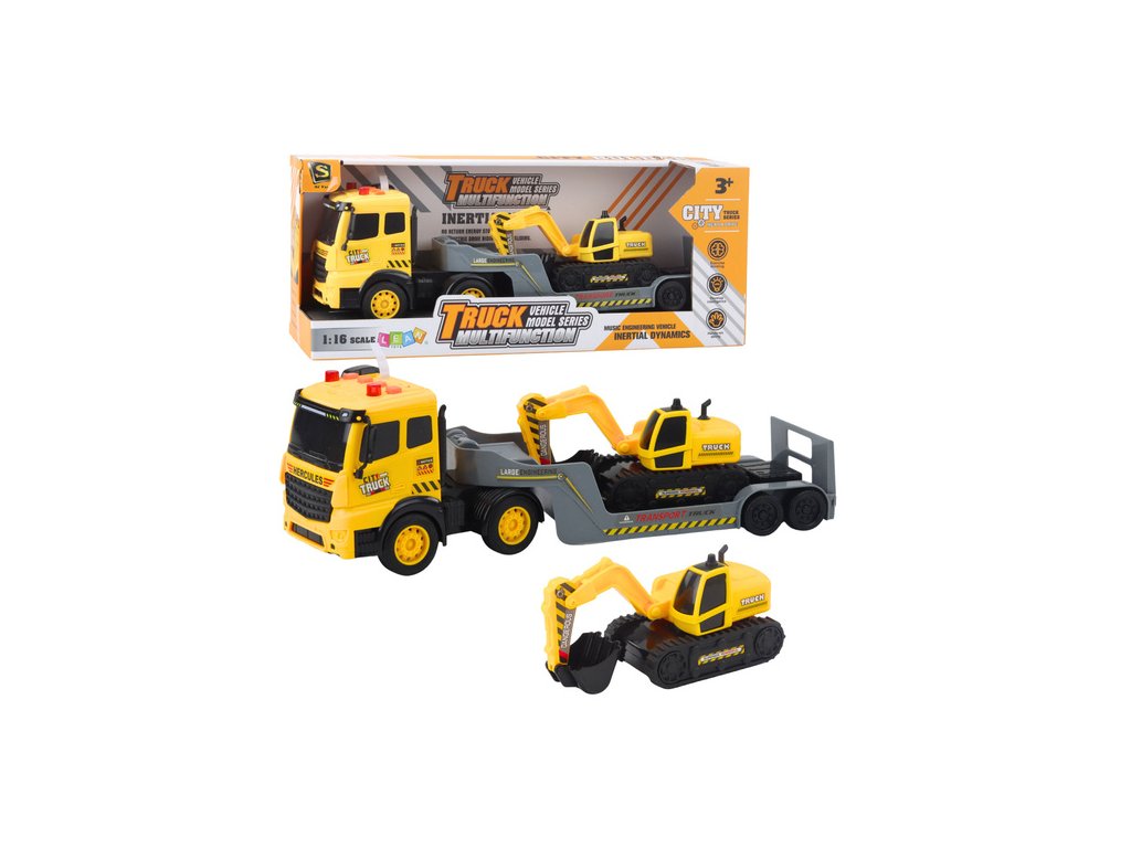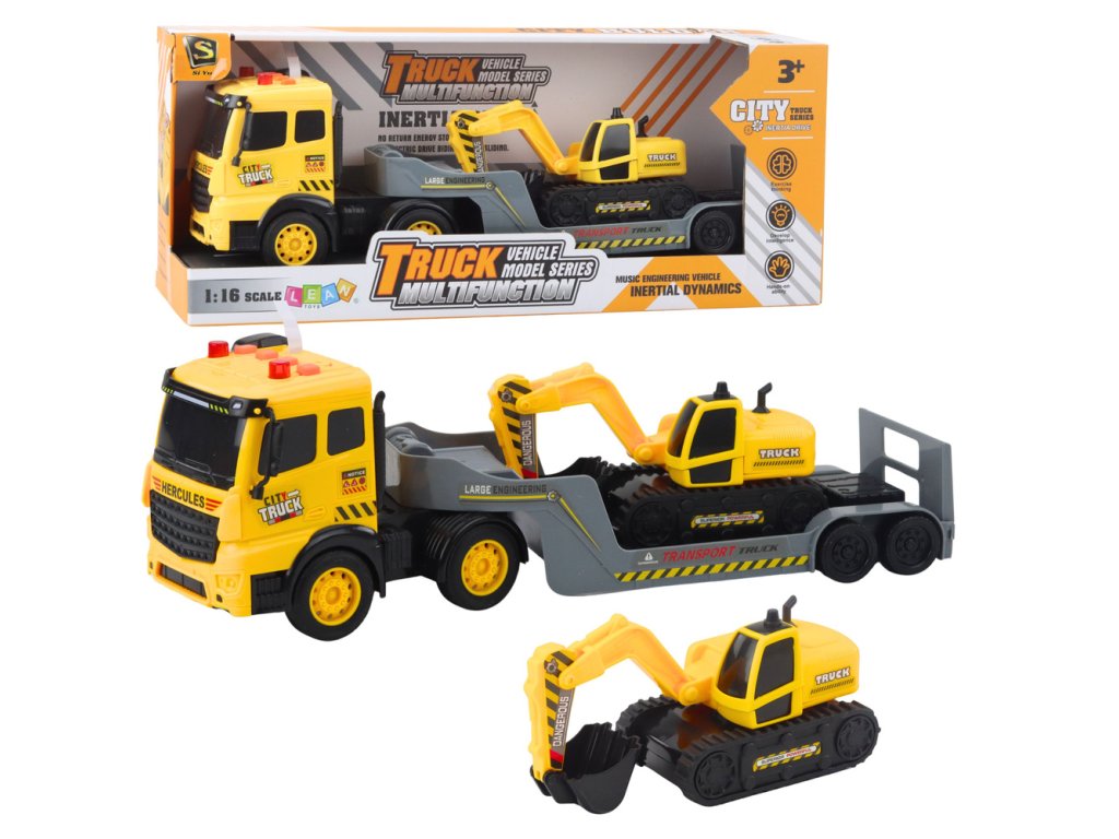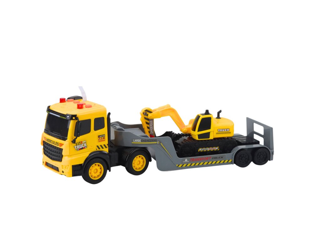 Sada nákladního auta s přívěsem a bagrem je vynikající nabídkou pro malé fanoušky motorismu a stavebních strojů. Vozidlo je vyrobeno s důrazem na detail a má mnoho interaktivních prvků, díky kterým je hra ještě zajímavější a realističtější.