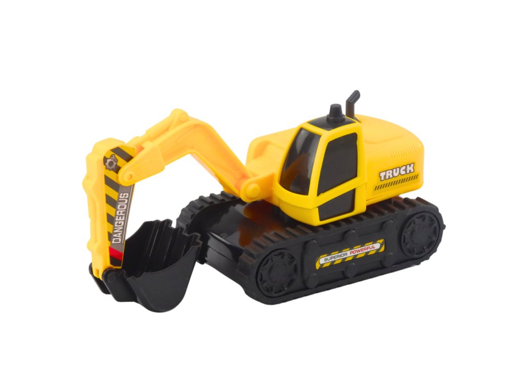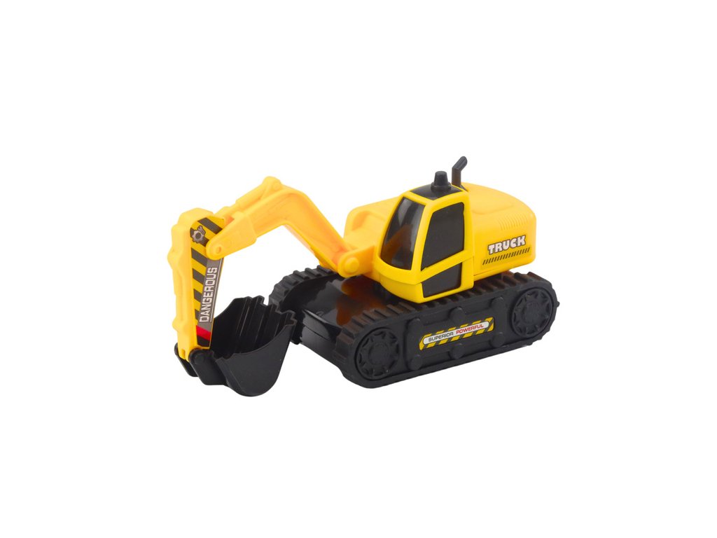 Součástí sady je realistický pásový bagr, jehož korba se otáčí o 360° a jehož lžíci lze ovládat boční rukojetí. Pohyblivé části umožňují dítěti ztvárnit scény ze staveniště a rozvíjet při hře svou představivost.