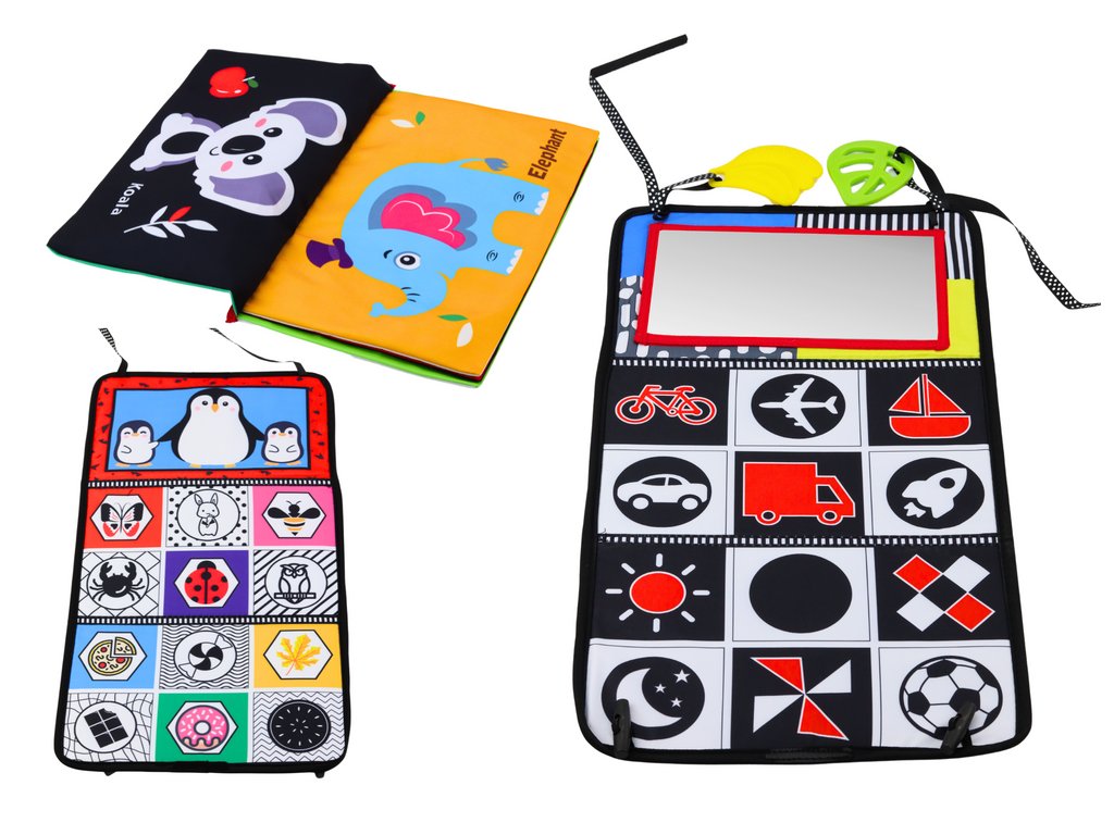 Miminko bude s potěšením pozorovat svůj odraz a experimentovat s pohybem. Součástí sady je také měkká šustící knížečka s obrázky zvířátek pro další smyslovou stimulaci. Tato všestranná podložka pro miminko je nejen hračkou, ale také nástrojem pro podporu smyslového, motorického a kognitivního vývoje dítěte, kterému poskytuje nezapomenutelné zážitky a chvíle radosti během hraní.