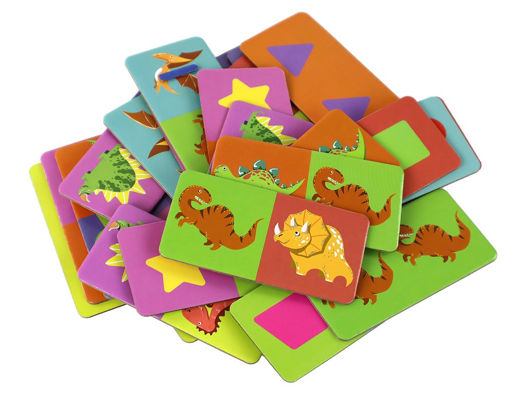 Sada se skládá z 28 dílků, z nichž každý představuje polovinu různých obrázků dinosaurů. Vaše dítě bude mít příležitost rozvíjet logické myšlení a schopnost soustředění, když se bude snažit dokonale přiřadit dílky a vytvořit sled různých obrázků dinosaurů.