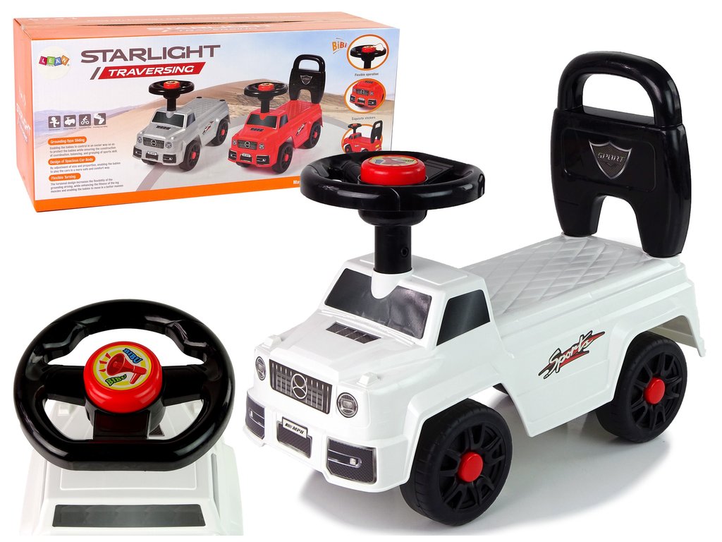 Dětské odrážedlo v podobě autíčka povzbudí batole k fyzické aktivitě příjemným způsobem. Odrážedlo je vybaveno volantem s klaksonem a odnímatelnou opěrkou. Celé autíčko je velmi stabilní a má široká kola s gumovým lemem pro co největší bezpečnost dítěte.