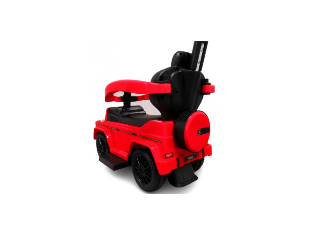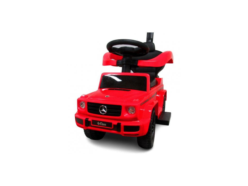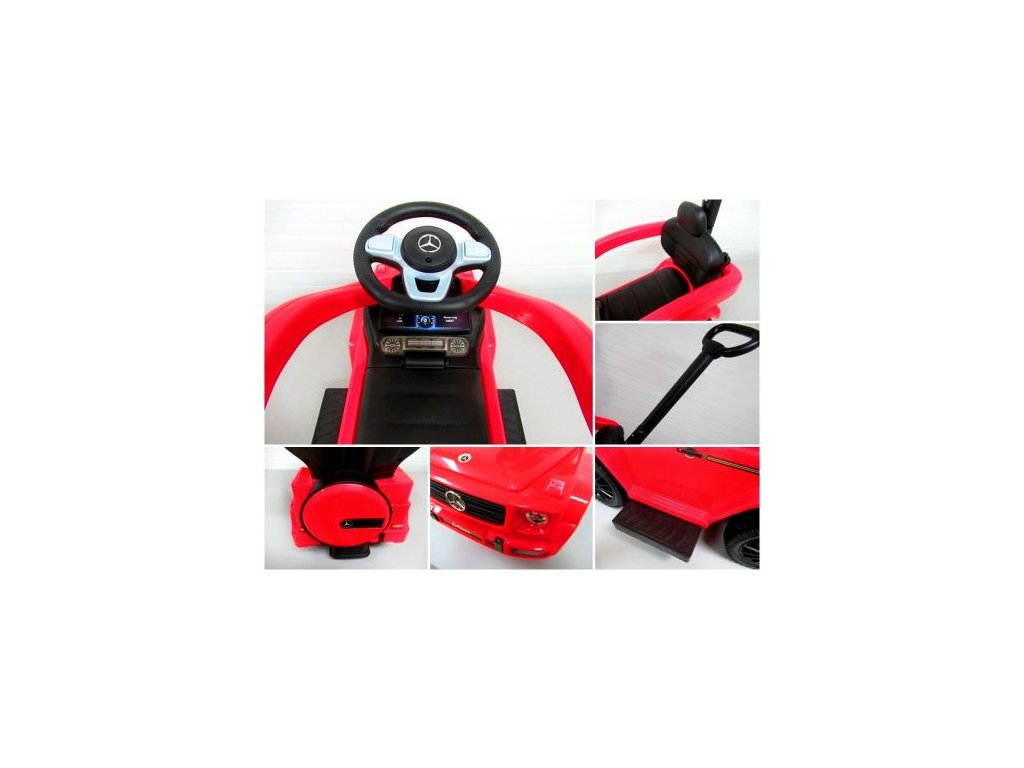 Licencované odrážedlo Mercedes AMG G350 zajišťuje bezpečnost při jízdě díky konstrukci, která chrání proti převrácení. Mezi bohaté vybavení patří klakson a melodie na volantu. Odrážedlo má úložný prostor a odnímatelnou vodící tyč a bezpečnostní madla.