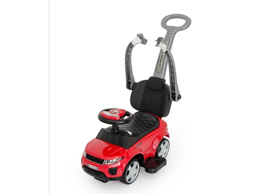Odrážedlo Sport Car s vodící tyčí 3v1 GUMOVÉ kola červené