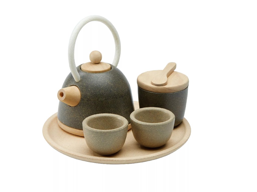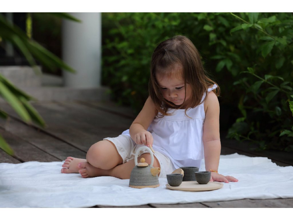 Uspořádejte čajový dýchánek s touto dřevěnou sadou od PlanToys. Sada obsahuje podnos, nádobí a konvičku určené pro dětskou hru, které podporují představivost a nácvik společenských rolí.