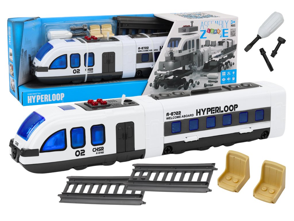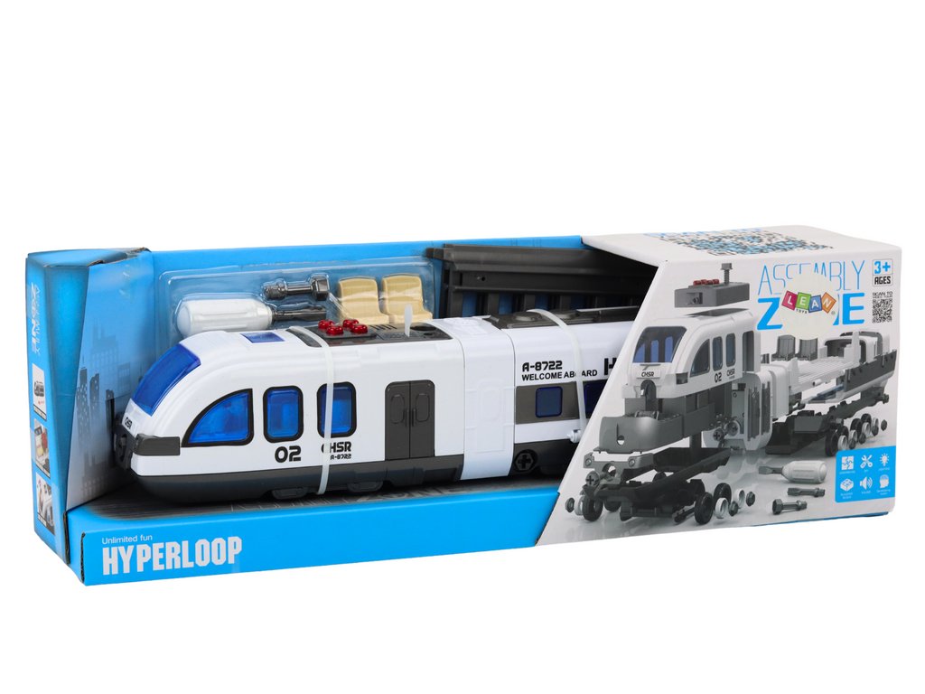 Hračka vlak k rozložení a montáži je inovativní a interaktivní hračka, která nejen přináší dětem spoustu radosti, ale také rozvíjí jejich manuální dovednosti, koordinaci pohybů a představivost. Vlak je esteticky navržen, dominující barvou je bílá, doplněný elegantními šedými prvky, což mu dodává moderní a atraktivní vzhled.
