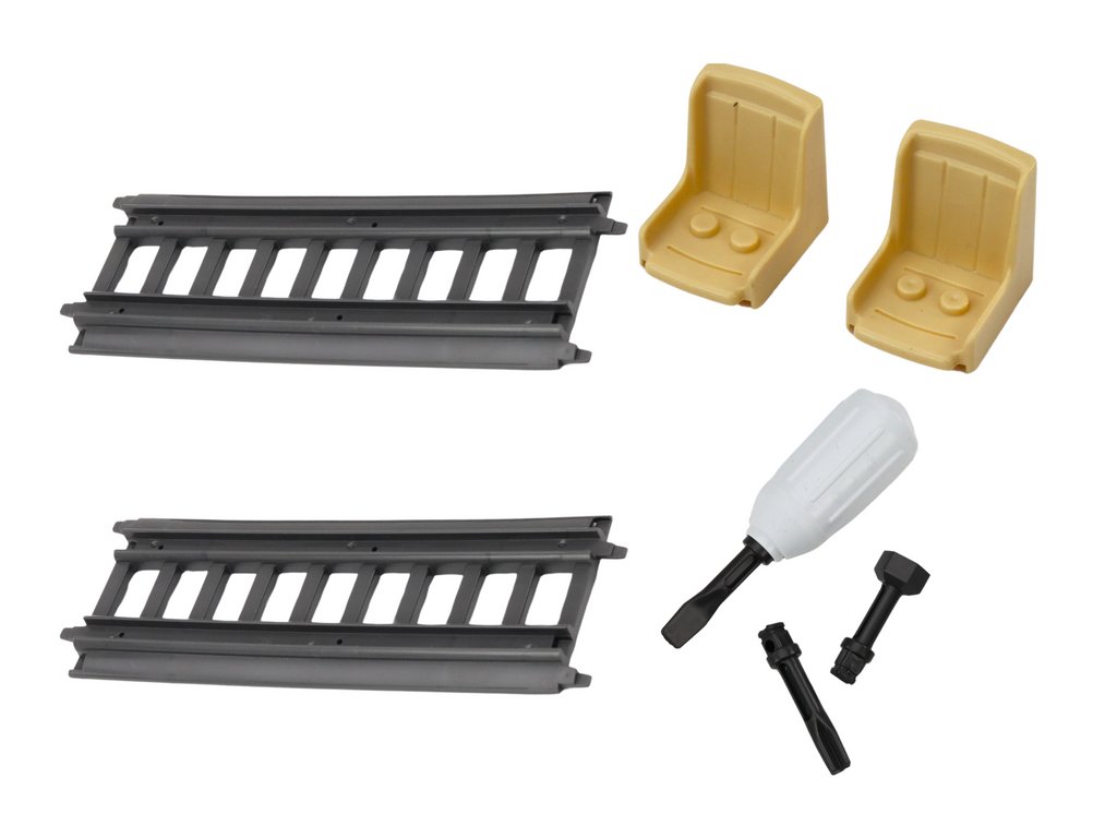 V sadě se nacházejí dva šrouby a šroubovák, které umožňují dětem vlak rozložit a složit. Tato funkce nejen baví, ale také učí děti základním dovednostem v kutilství, trpělivosti a přesnosti. Sada obsahuje dvě kolejnice, které po sestavení vlaku umožnují jeho používání jako figurky. Kolejnice lze snadno spojovat a vytvářet tak trasu, po které se vlak může pohybovat, což dodává hře realismus a interaktivitu.