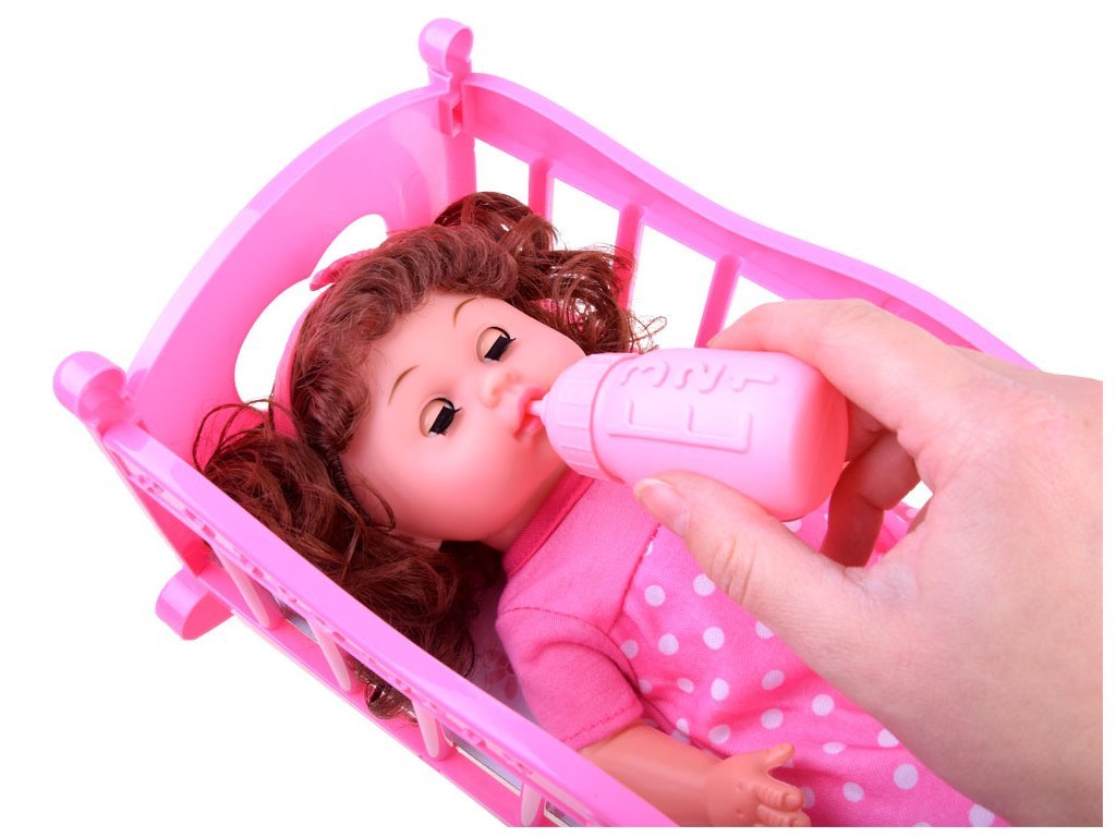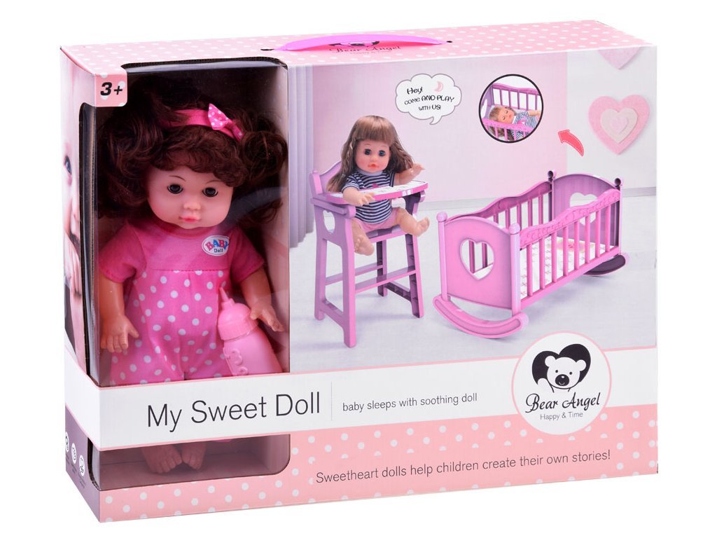 Panenka se sadou doplňků potěší každou holčičku. Sada obsahuje růžové doplňky pro panenku a tím jsou postýlka, dětská židlička a lahvička. Panenka má funkci pití. Stačí naplnit lahvičku vodou a dát plenku nebo rychle položit na nočník. Také má funkci řeči, díky zabudovanému reproduktoru v bříšku. Bude mluvit, smát se, plakat, vydávat zvuky jídla a pití. Má pohyblivé končetiny. Při položení na záda se panence zavřou oči. Chcete-li spustit zvuk, sejměte kryt ze zvukového adaptéru, který se nachází v břiše.
