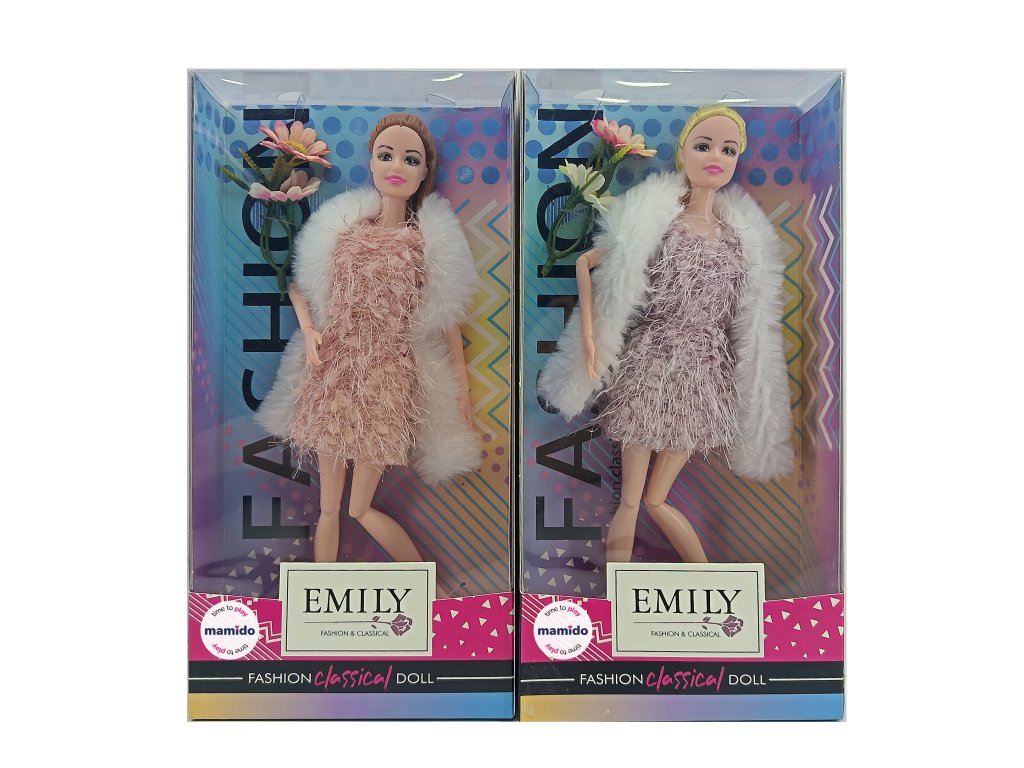 Panenka Emily z klasické série okouzlí svým módním vzhledem a pohyblivými klouby, které umožňují přirozené pózování. Je oblečená do stylových šatů s kožešinovým přehozem a je připravena stát se hvězdou každé dětské hry. Skvělá volba pro malé módní návrhářky a sběratelky panenek.