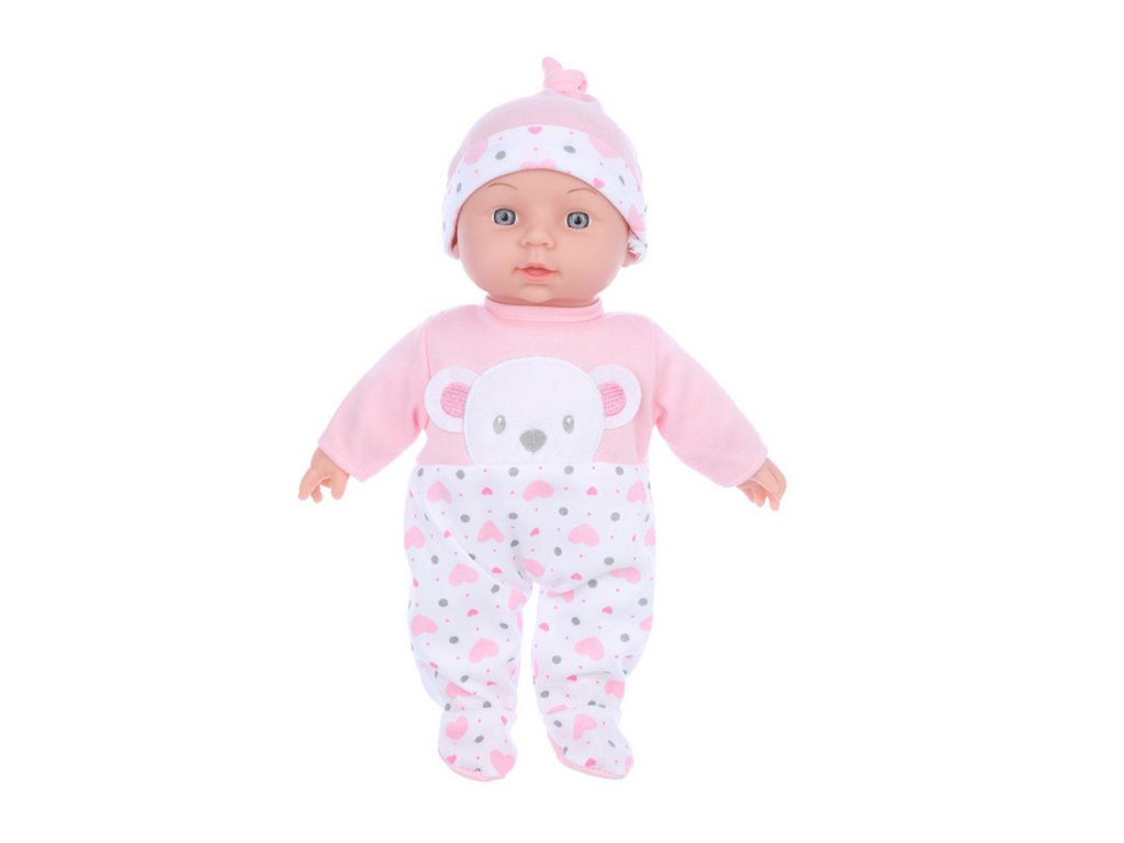 Tato výjimečná panenka miminka v růžovém overálku s medvídkem je ideálním společníkem pro malé děti, které se chtějí naučit péči a zodpovědnosti. Roztomilý design a pečlivě propracované detaily podporují dětskou představivost a rozvíjí sociální a emocionální dovednosti. Panenka má také zvukovou funkci, po stisknutí bříška vydává charakteristické zvuky, což dodává hře autentičnost. Vyrobena z bezpečných materiálů, je tato panenka skvělou volbou pro zábavu i učení.