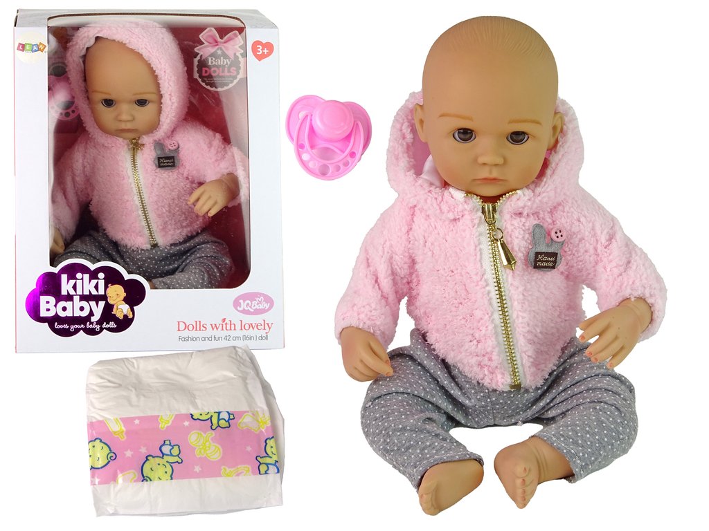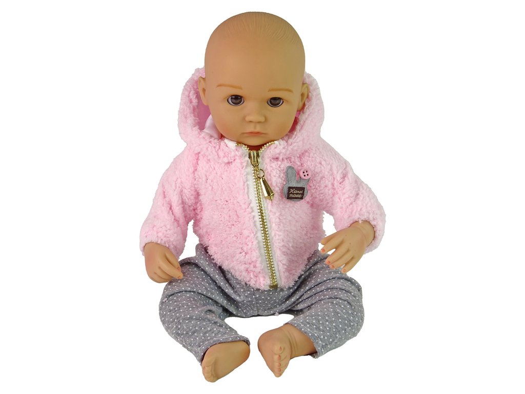 Panenka Miminko má délku 40 cm, což ji činí ideálním společníkem pro malé ručky. Její roztomilý úsměv a výrazné oči okouzlí každé dítě, zajišťujíc pocit autentičnosti. Oblékaná v roztomilých, šedých kalhotkách s puntíky a růžové mikině z měkkého, příjemného materiálu, vypadá nejen okouzlující, ale i módně!