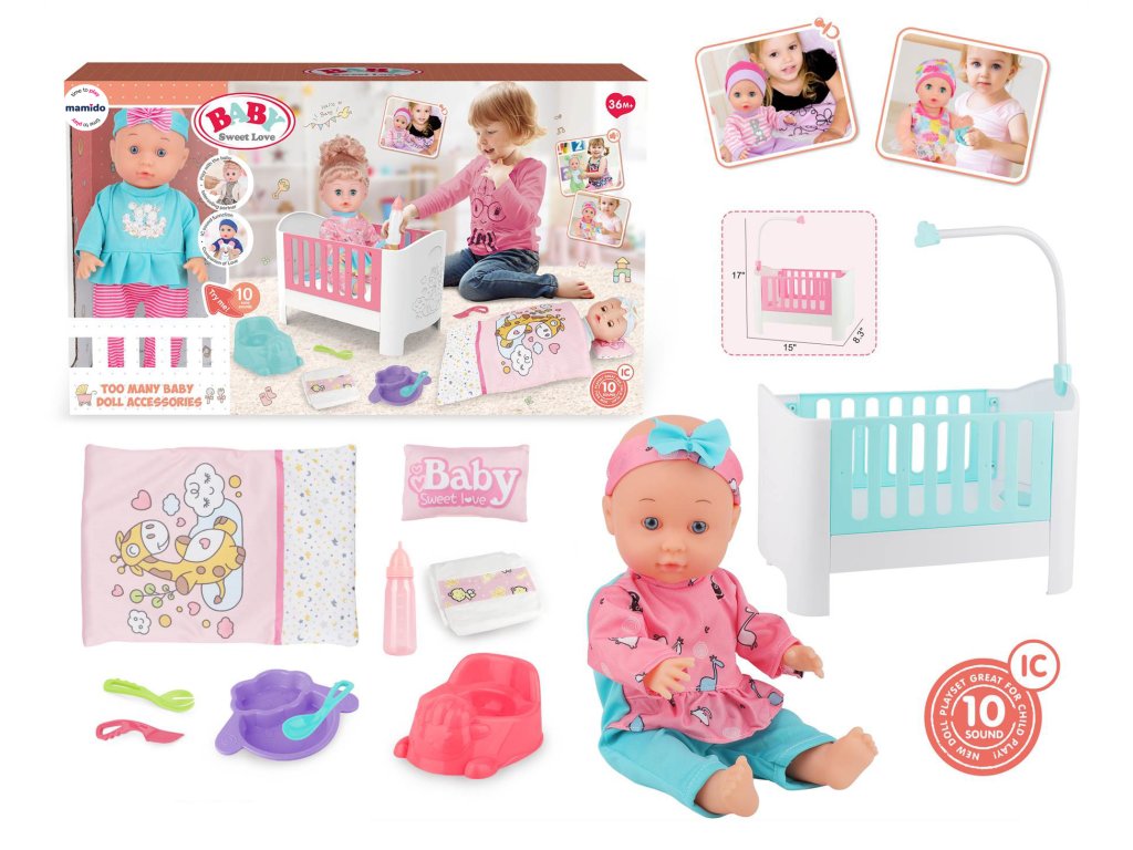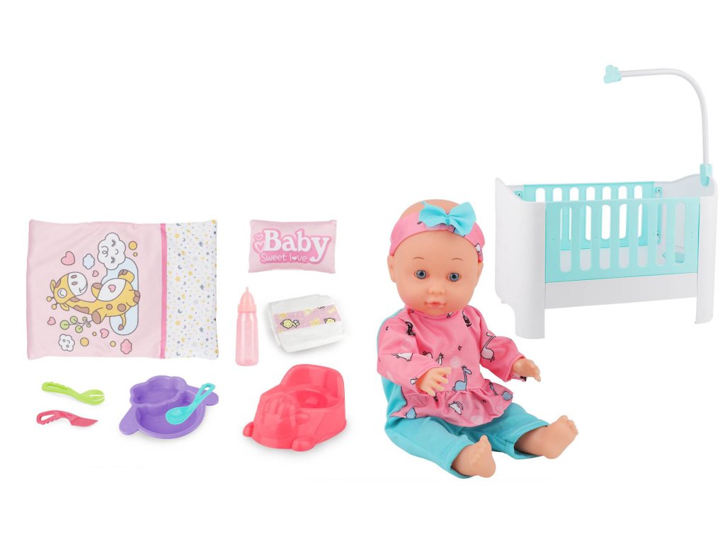 Panenka miminko s postýlkou a doplňky Baby Sweet Love MT1597