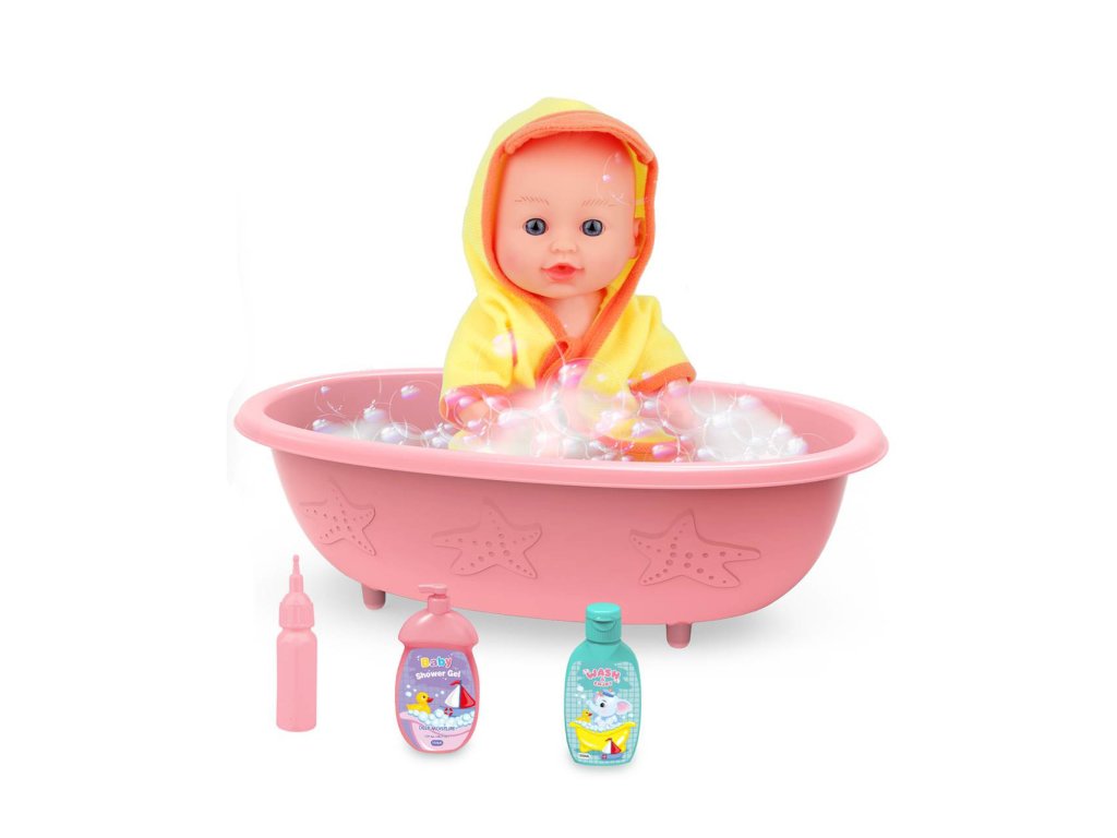 Roztomilé koupací miminko přinese dětem spoustu zábavy při každodenním hraní! Panenka o velikosti 30 cm je oblečená do hebkého župánku a doprovází ji kompletní sada koupacích doplňků – vanička, lahvička, koupací gel a šampon. Ideální hračka pro péči, napodobování dospělých a rozvoj dětské fantazie.