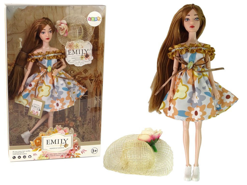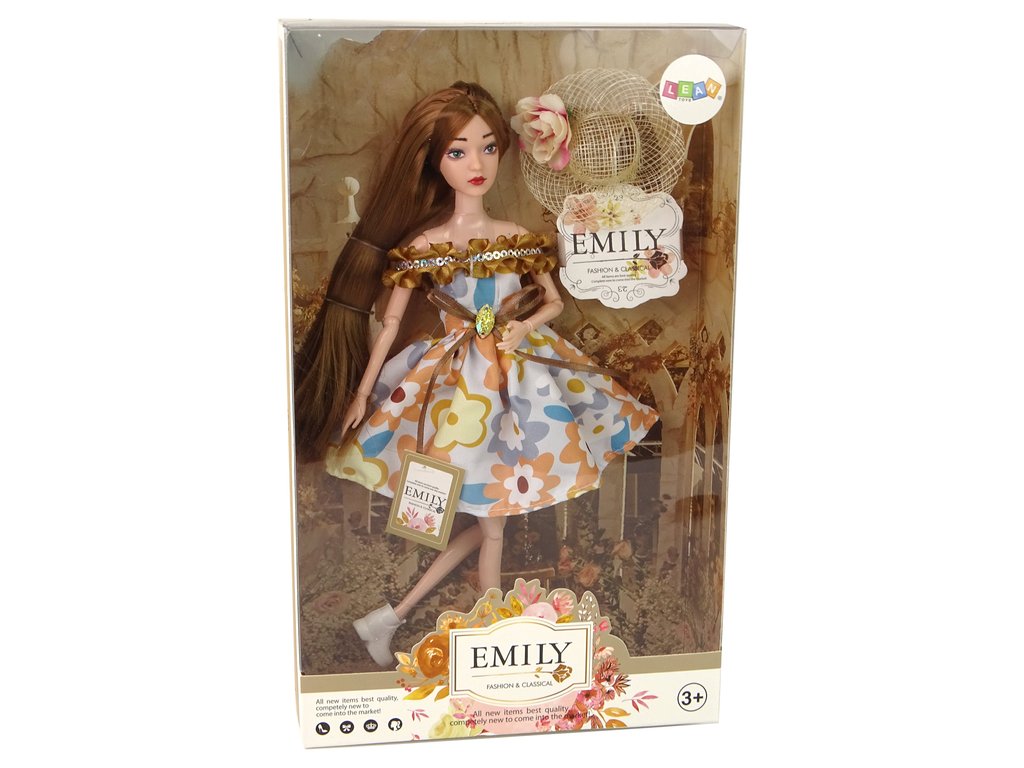 Součástí balení panenky o rozměrech 30 cm x 7 cm x 4 cm je také elegantní béžový klobouček, který podtrhuje Emilyin styl.