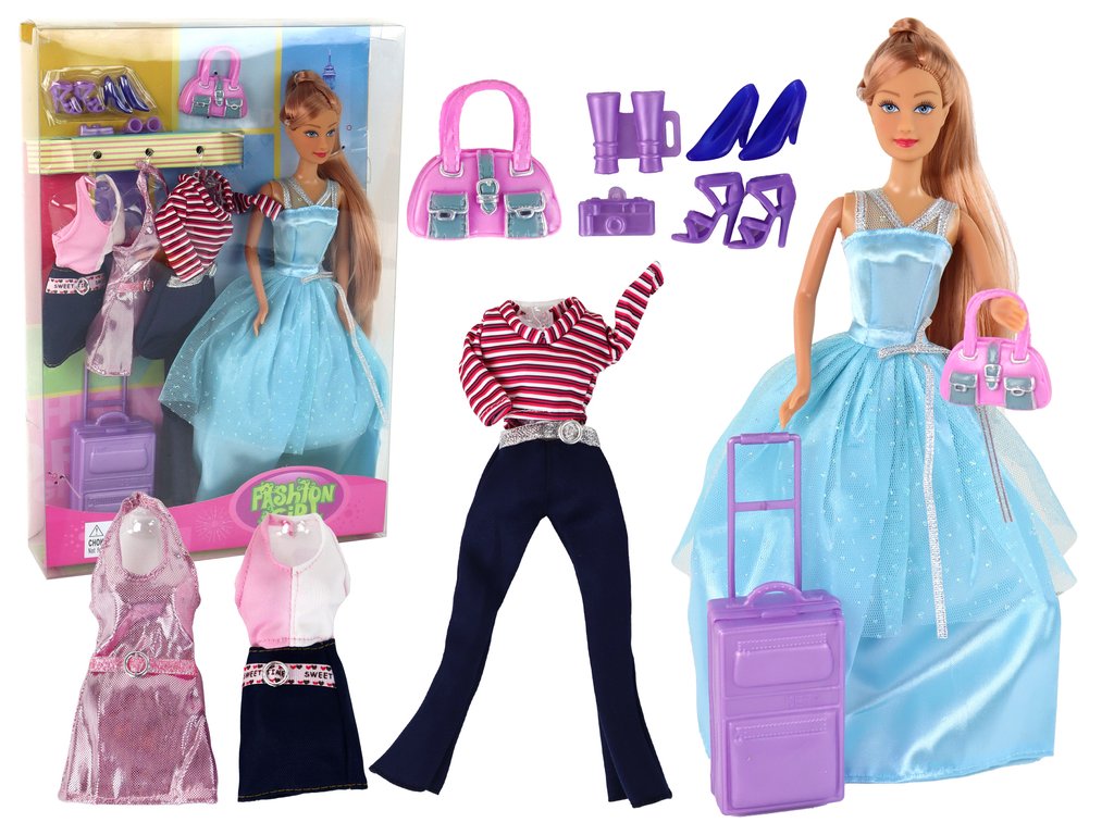 Naše sada obsahuje také dva páry vysokých podpatků, kabelku, kufr, malý fotoaparát a dalekohled. Díky těmto doplňkům mohou děti plánovat výlety, organizovat focení a vytvářet úžasné příběhy.