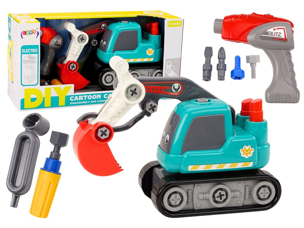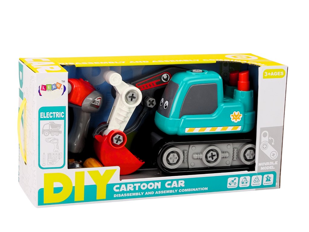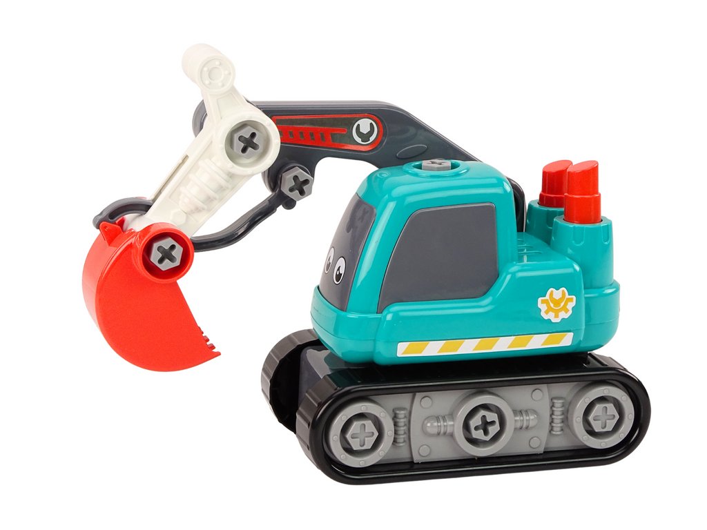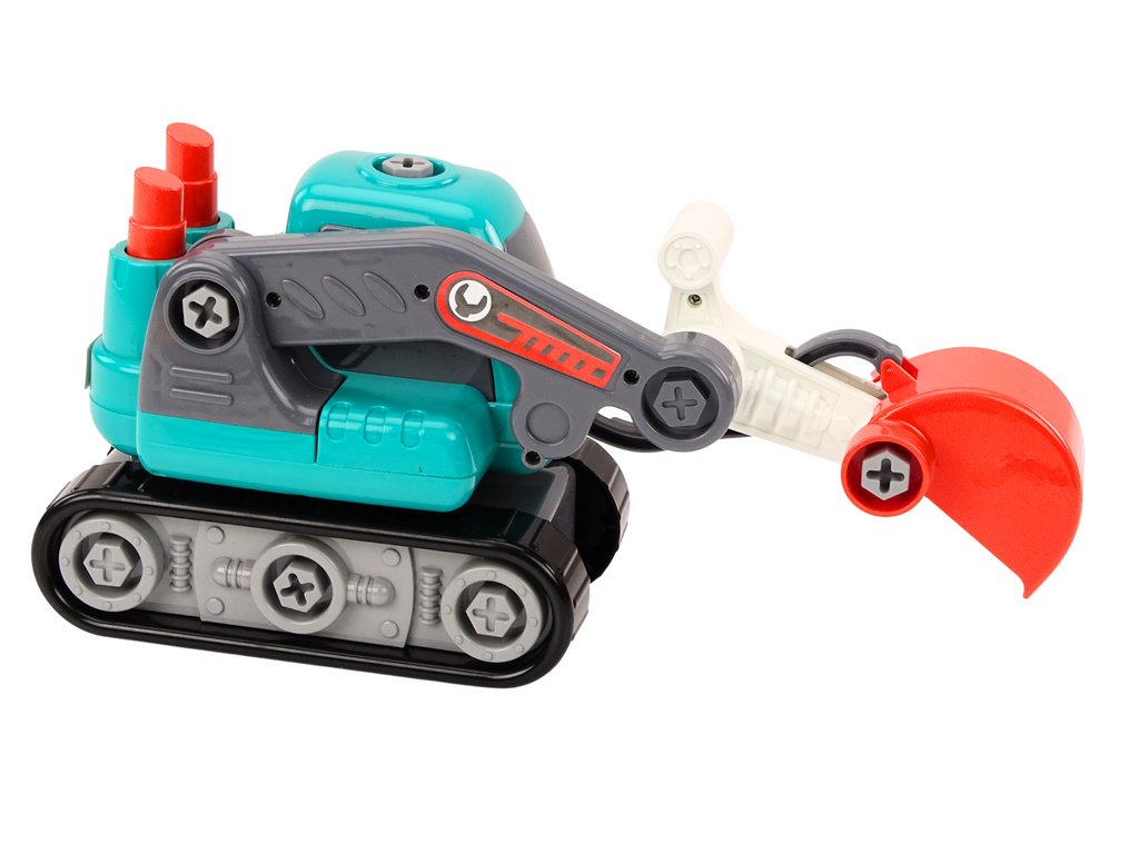 Sada nástrojů - vrtačka, šroubovák, klíč a tři vyměnitelné koncovky - je nedílnou součástí této hračky, umožňuje dětem samostatně rozebírat a sestavovat vozidlo. Díky tomu si děti nejen hrají, ale také učí, jak pracovat bagr, rozvíjejí tak své manuální dovednosti, koncentraci a kreativitu.