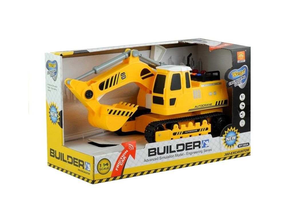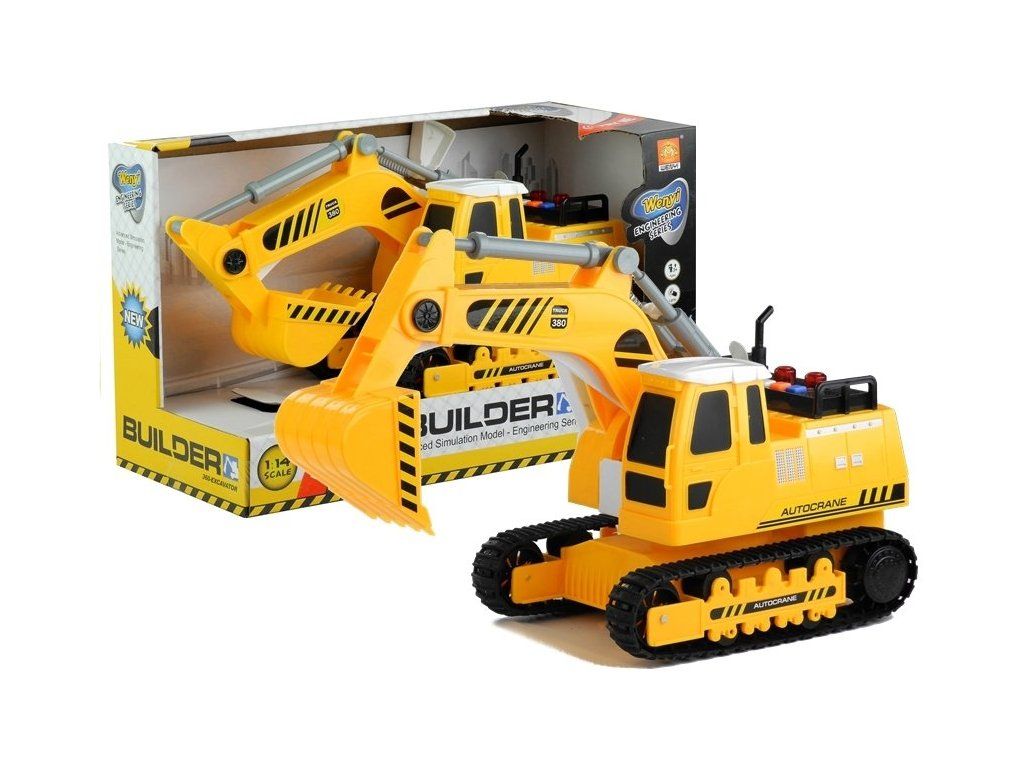 Rypadlo pohybující se na gumě, protektorované dráhy. Toto rypadlo se vyznačuje třecím pohonem, zvuky, světly a pohyblivým kbelíkem, který s ním jistě bude hrát senzační. Dětský bagr byl vyroben se zvláštním důrazem na detail, který je vidět na první pohled. Velká lžička umístěná na pohyblivém ramenu se ovládá ručně - páku zatlačte, aby se lopatka zvedla a spadla dolů. Hračka rypadlo je určeno pro všechny děti od 3 let. Má certifikát CE.