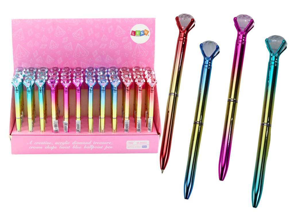 Tato jedinečná propiska spojuje eleganci a funkčnost. Na jejím konci je diamant, který jí dodává sofistikovaný vzhled. Modrý inkoust činí propisku ideálním společníkem pro každodenní použití i pro speciální příležitosti. Je to skvělá volba pro ty, kteří chtějí přidat šarm a eleganci do svých poznámek nebo korespondence.