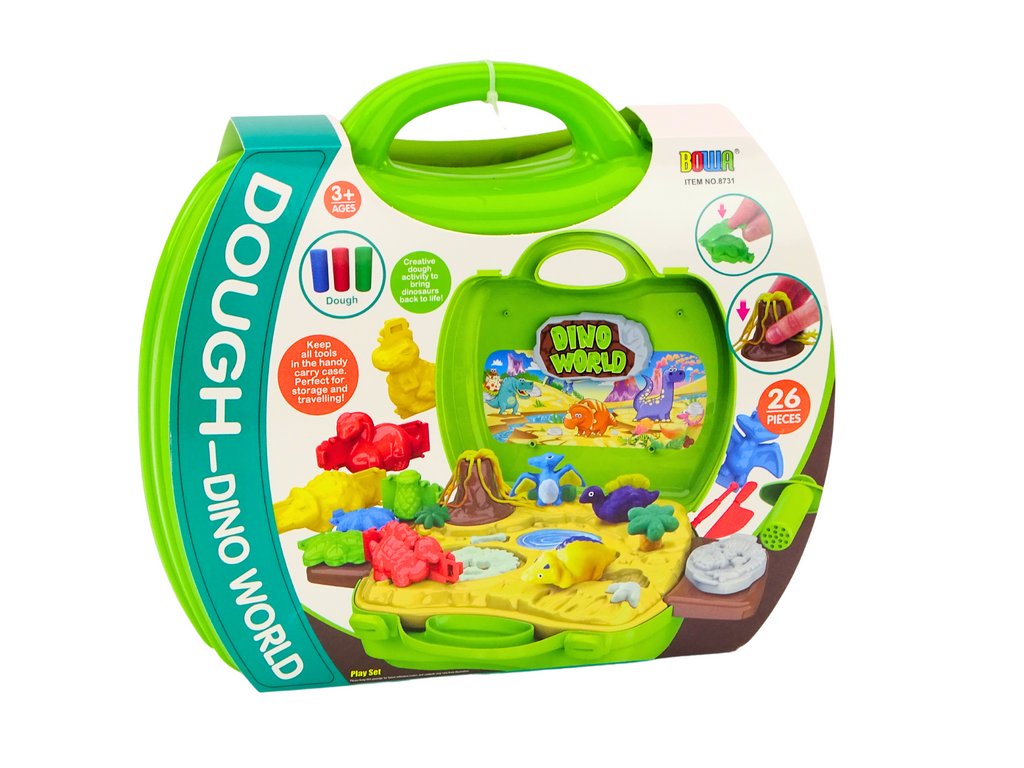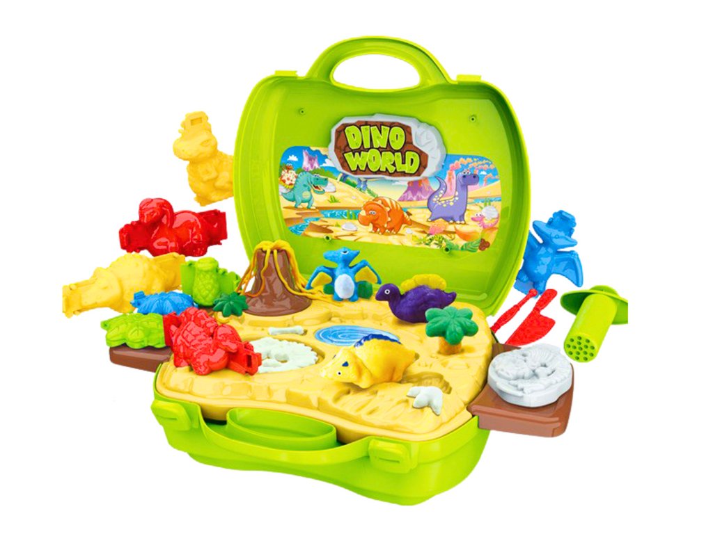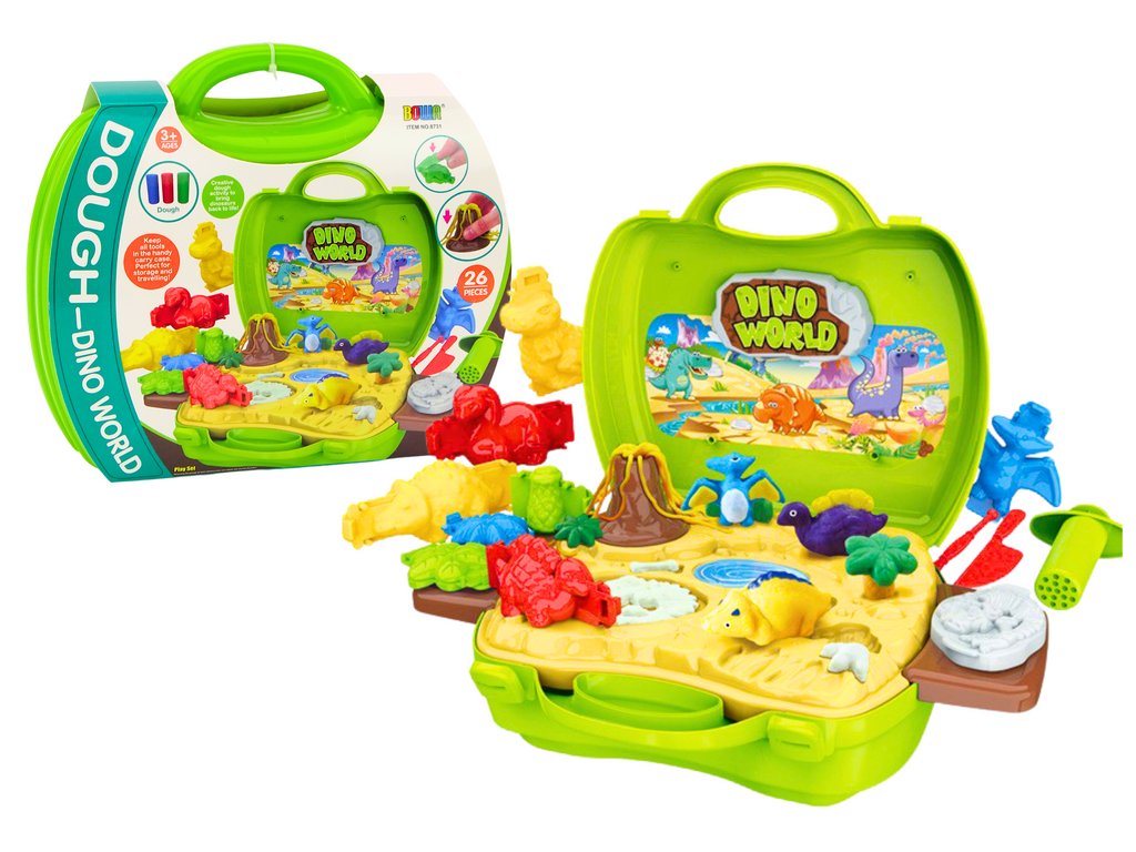 Plastelína Svět Dinosaurusů v Kufříku Formy Nástroje Zelená